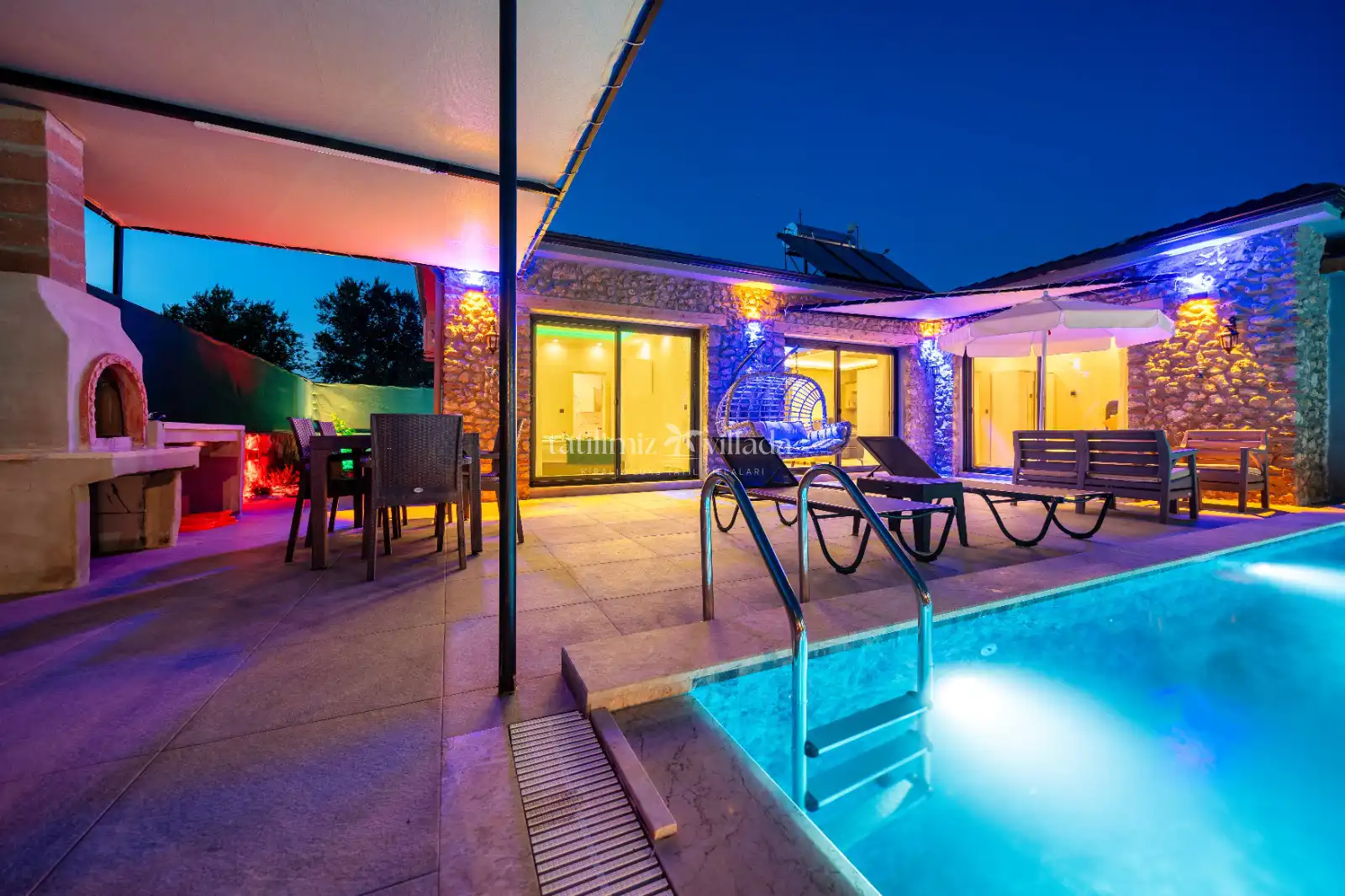 Gözlerden uzak, tamamen korunaklı bir tatil ortamı sunan bu villa, modern iç mekanları, özel havuz ve bahçe alanı ile size özgür ve konforlu bir tatil deneyimi vaat ediyor. Geniş aileler, arkadaş grupları veya romantik bir tatil arayanlar için mükemmel bir seçenek olan bu villa, hem iç hem de dış mekanlarda sunduğu lüks olanaklar ile tatilinizi eşsiz kılacak tüm imkânları sunmaktadır. Doğayla iç içe, huzurlu ve konforlu bir tatil arıyorsanız, Kayaköy’deki bu muazzam villa sizleri bekliyor.