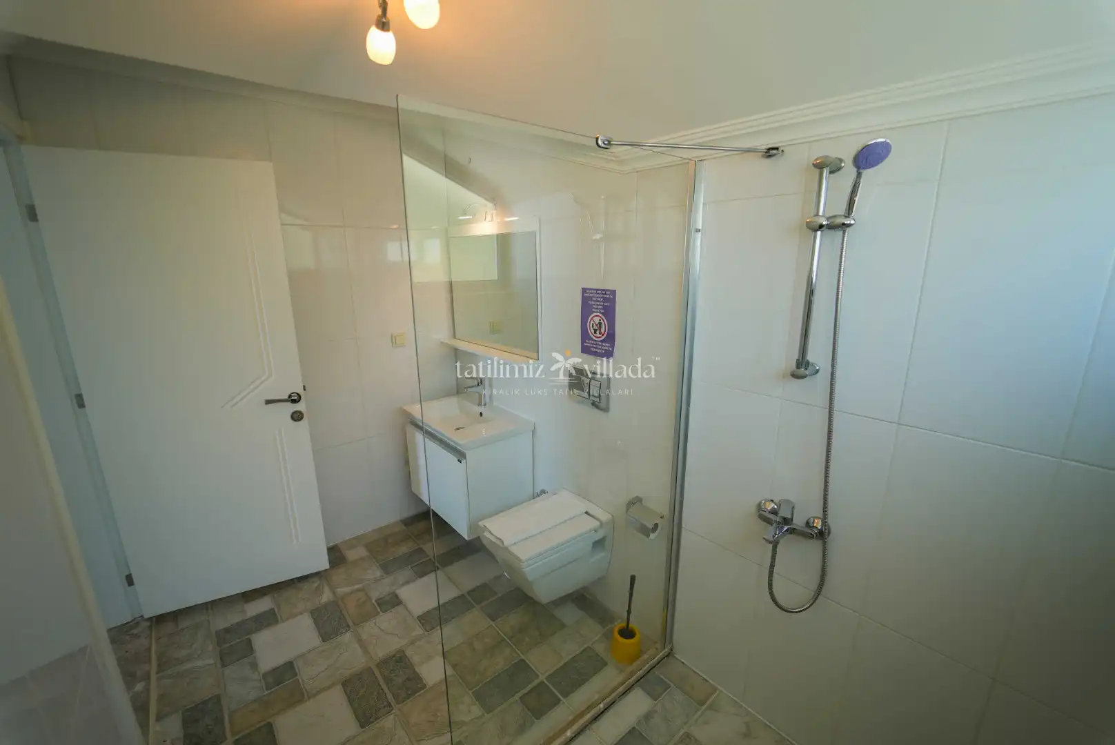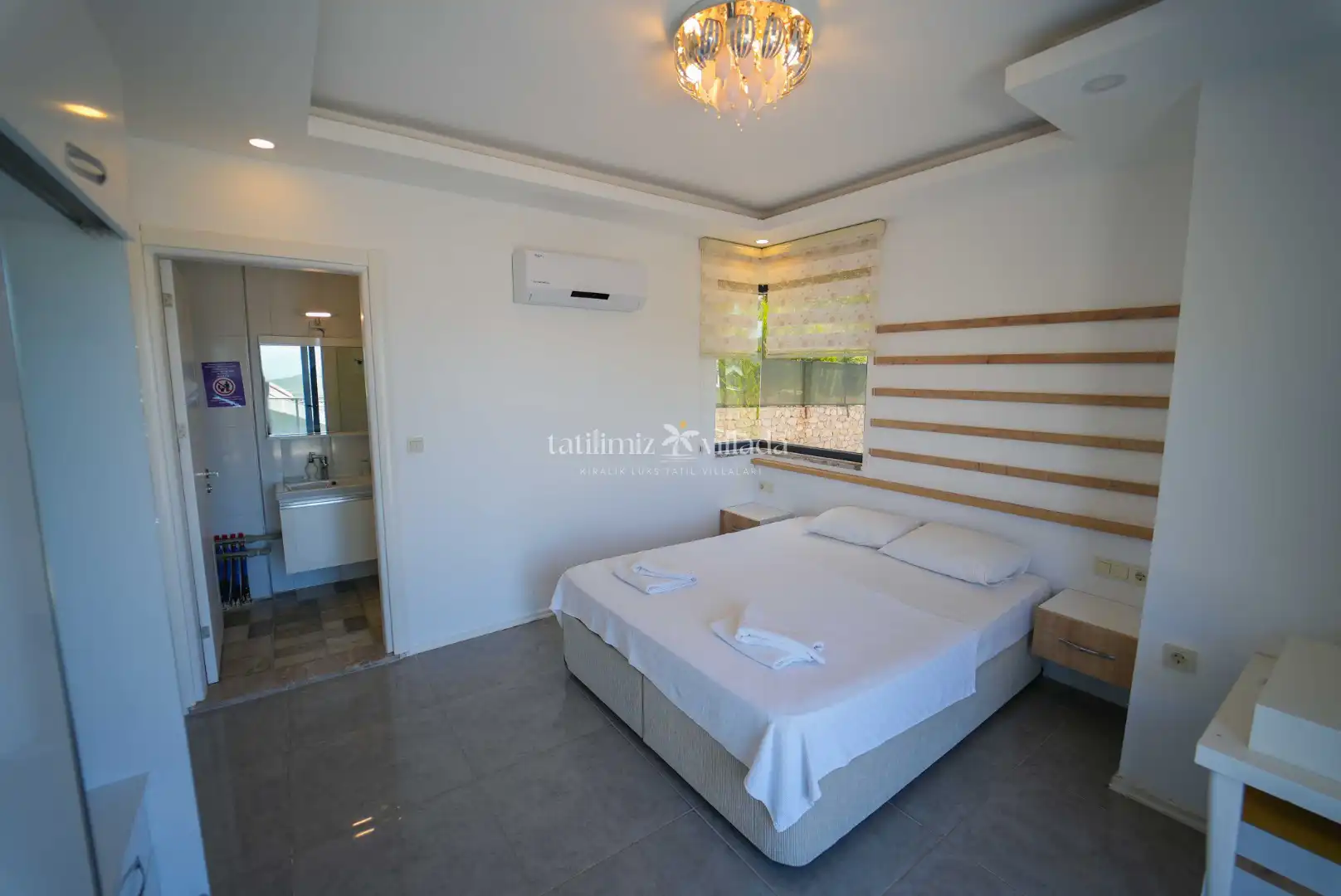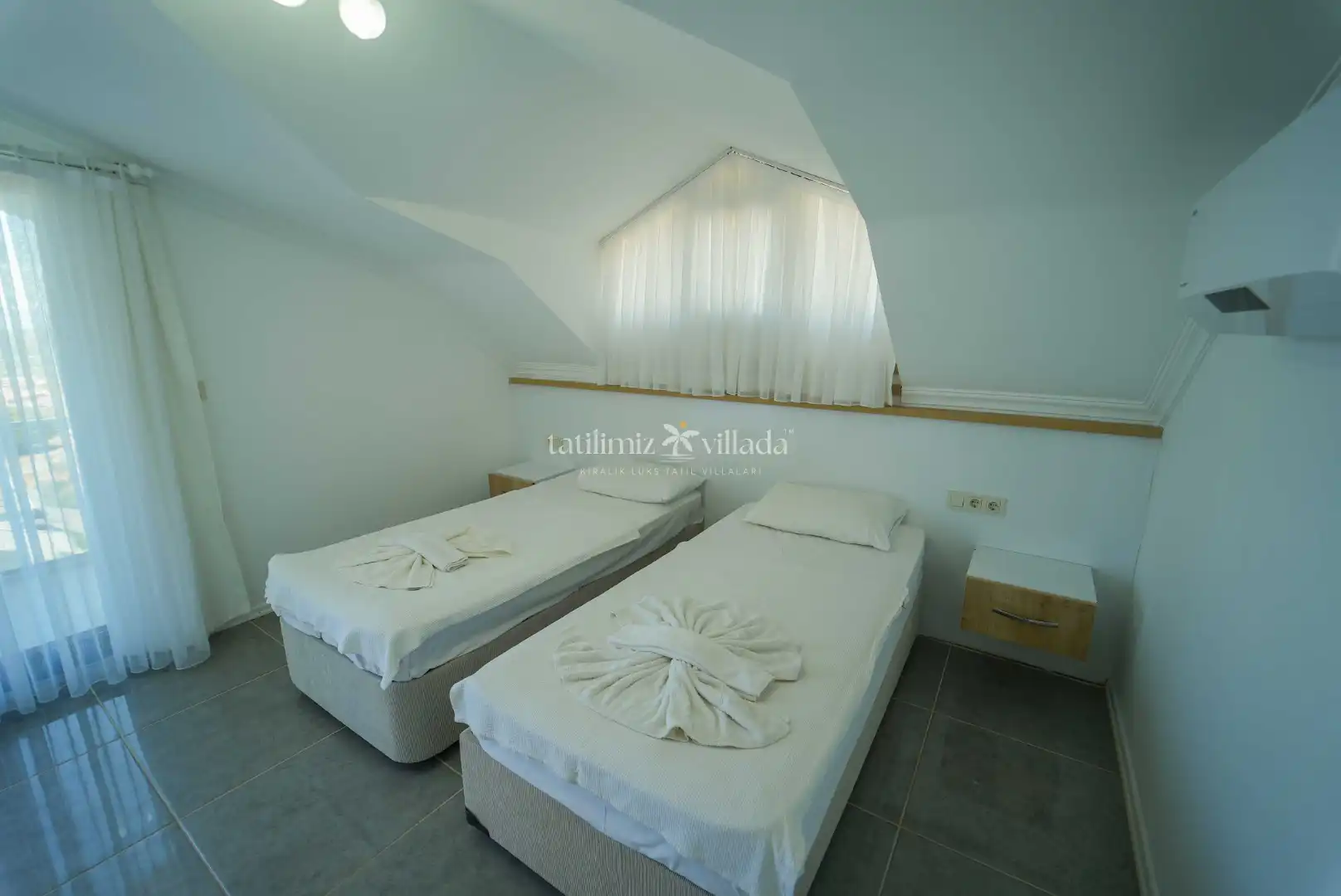 Villa Angel 2, geniş ve ferah iç mekânlarıyla öne çıkmaktadır. Villada 7 yatak odası ve ayrı bir oturma alanı bulunmakta olup, her yatak odasında özel banyo mevcuttur. Bu sayede misafirler hem konforlu hem de mahremiyetin ön planda olduğu bir tatil deneyimi yaşar.