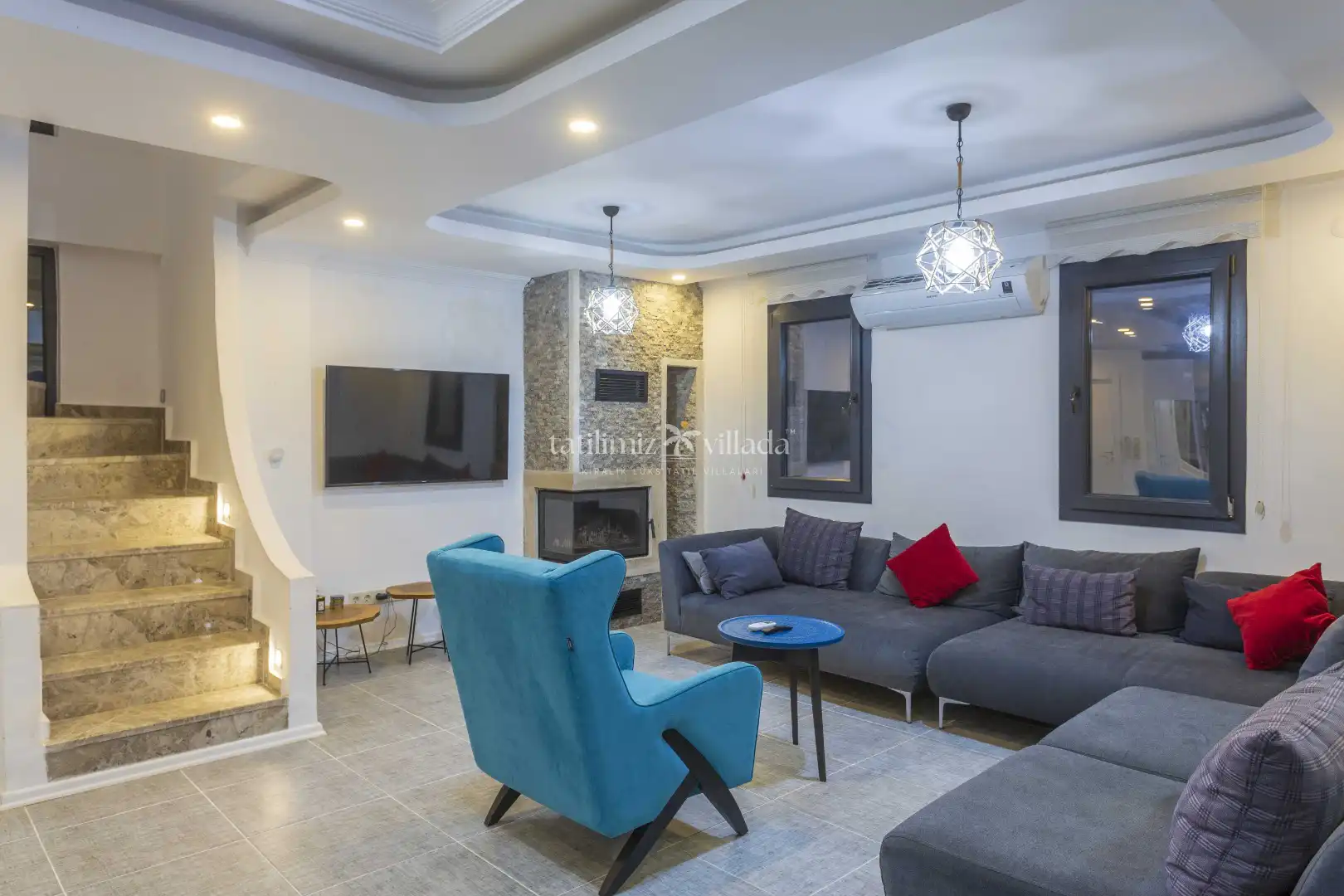 Villanın iç mekânları modern yaşam konforu esas alınarak tasarlanmıştır. Buzdolabı, fırın, ekmek kızartma makinesi, çamaşır ve bulaşık makinesi, güvenli kasa ve sineklikler gibi tüm temel ihtiyaçlar eksiksiz şekilde sunulmaktadır. Böylece tatiliniz boyunca konforlu ve sorunsuz bir konaklama deneyimi yaşarsınız.
