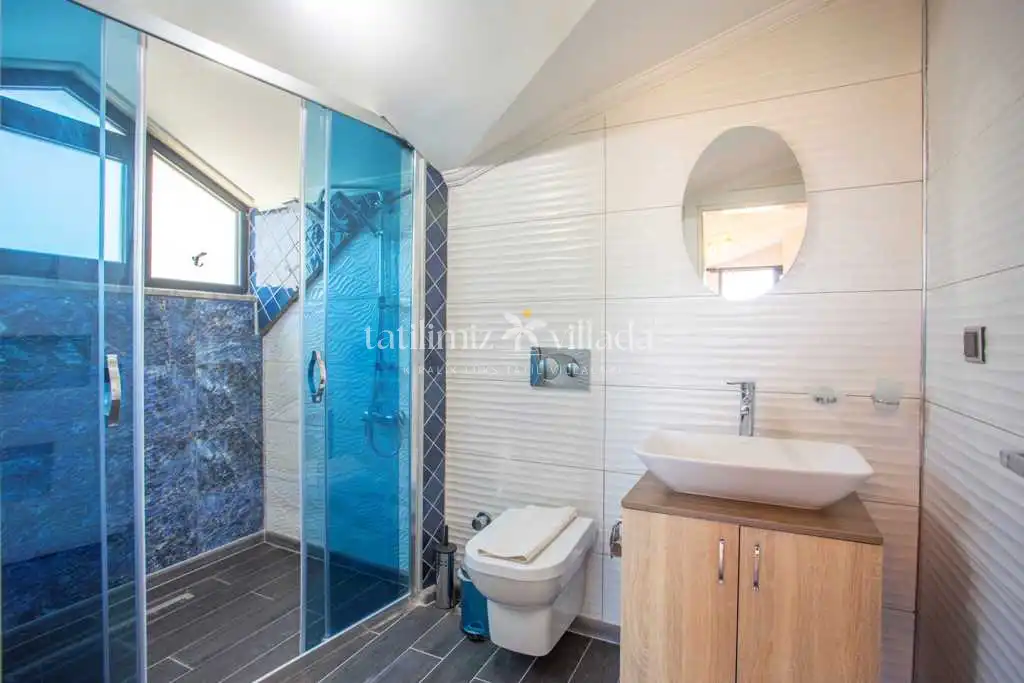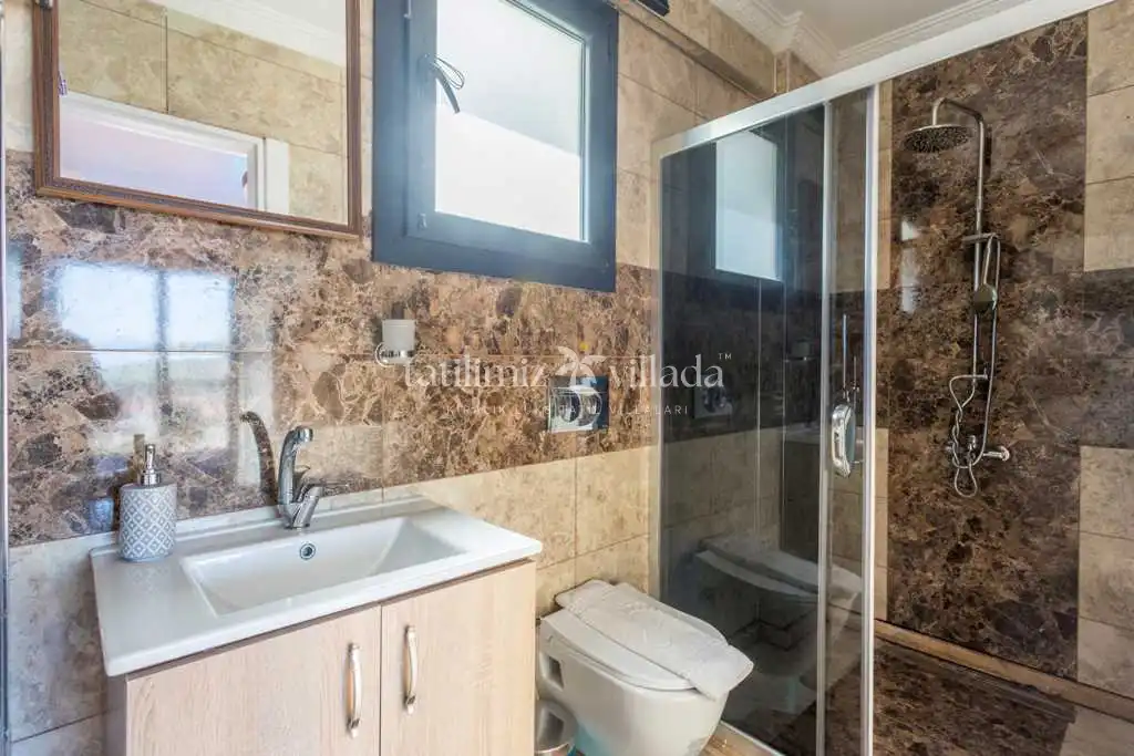 Villa Angel 4, 3 ebeveyn banyolu yatak odası ile toplam 6 kişilik konaklama kapasitesine sahiptir. Tüm yatak odalarında özel banyo bulunması, misafirlerin konforunu ve gizliliğini ön planda tutan bir tatil deneyimi sunar.