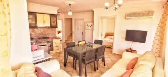 Apart Aqua Çalış, 3 yatak odası ve 1 salondan oluşmakta olup toplamda 6 kişiye kadar konaklama kapasitesine sahiptir. Her odada temel mobilyalar, klima ve rahat bir kullanım alanı sunulmaktadır. Tam donanımlı mutfağı sayesinde misafirler ev rahatlığında yemeklerini hazırlayabilir; geniş balkon veya terasta keyifle vakit geçirebilirler.