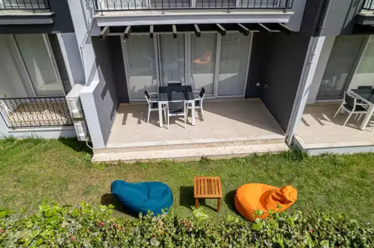 2+1 daire planına sahip olan apartımız; geniş salonu, tam donanımlı mutfağı, konforlu yatak odaları ve ferah banyosuyla, hem kısa süreli hem de uzun süreli konaklamalar için ideal bir yapıya sahiptir. Modern mobilyalarla döşenmiş iç tasarımı, günlük yaşam ihtiyaçlarınızı karşılayacak şekilde özenle düzenlenmiştir. Ailenizle ya da arkadaşlarınızla rahatça konaklayabileceğiniz bu şık apart, aynı zamanda sıcak ve samimi bir ev ortamı sunar.