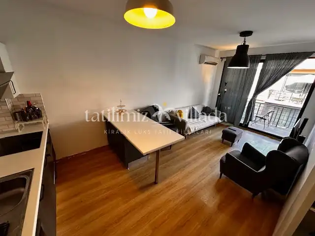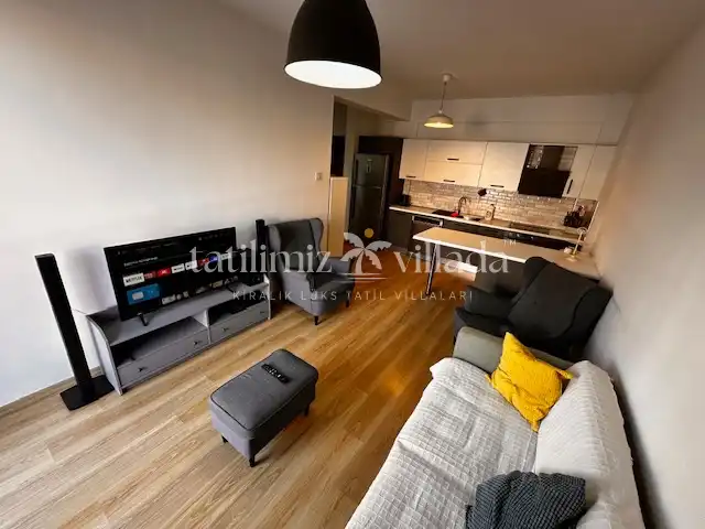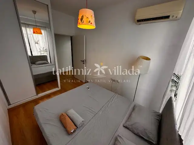 Daire içerisinde 2 yatak odası, 1 WC & banyo, tam donanımlı mutfak ve salon bulunmaktadır. Salonda yer alan çekyat sayesinde apart daire, 4–5 yetişkin kişiye kadar rahatlıkla konaklama imkânı sunar. Klima, TV ve uydu sistemi, Wi-Fi ve özel otopark alanı ile misafirlerine keyifli bir tatil deneyimi vaat eder.