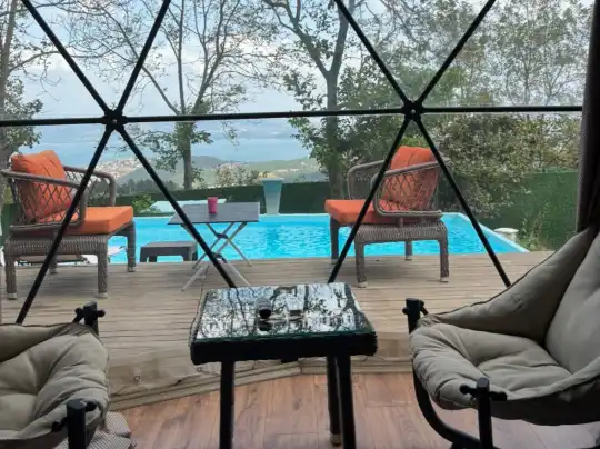 Balon H2 Sapanca Bungalov’un en dikkat çeken özelliklerinden biri de ısıtmalı, tamamen korunaklı ve etrafı kapalı özel havuzlarıdır. Bu sayede hem yaz hem de kış aylarında havuz keyfi yapılabilmekte, mahremiyet arayan misafirler için güvenli ve konforlu bir ortam sağlanmaktadır. Havuz keyfini daha da özel hale getirmek için kahvaltı hizmeti de konaklamaya dahildir.