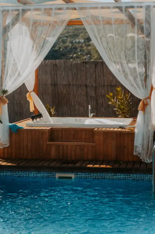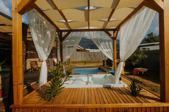 Her villada bulunan özel jakuzili alanlar, romantik bir akşam keyfi yapabileceğiniz ya da günün yorgunluğunu atabileceğiniz bir ortam sunuyor. Jakuzinizde rahatlayarak, huzur dolu bir atmosferin keyfini çıkarabilirsiniz. Korunaklı yapısı, dışarıdan hiçbir müdahale olmadan sevdiklerinizle birlikte baş başa kalmanızı sağlar. Villalarımızda tamamen mahremiyetinize saygı gösterilmiş olup, dilediğiniz gibi vakit geçirebilirsiniz.