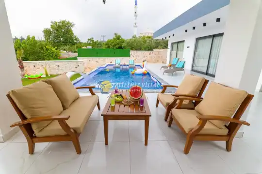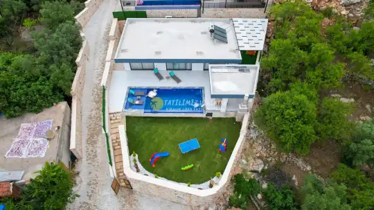 Oldukça geniş bahçe alanına sahip villamızın bahçesinde masa tenisi ve çocuk oyun alanı mevcuttur.