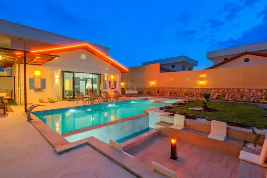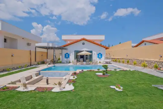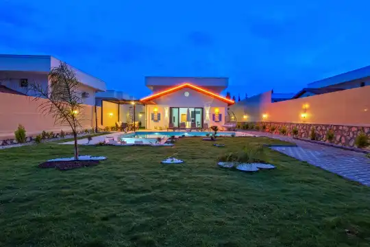 Villamızın her köşesi, misafirlerin konforunu ön planda tutacak şekilde özenle dizayn edilmiştir. Geniş bahçe alanı, özel yüzme havuzu ve rahat oturma grupları ile dış mekânda keyifli vakit geçirebilir, sevdiklerinizle birlikte unutulmaz anlar yaşayabilirsiniz. Villanın içerisinde modern mobilyalar, tam donanımlı bir mutfak, ferah salon ve konforlu yatak odaları bulunmaktadır.