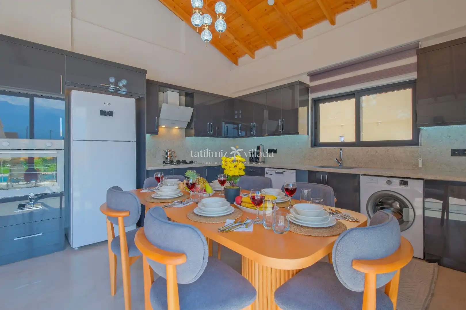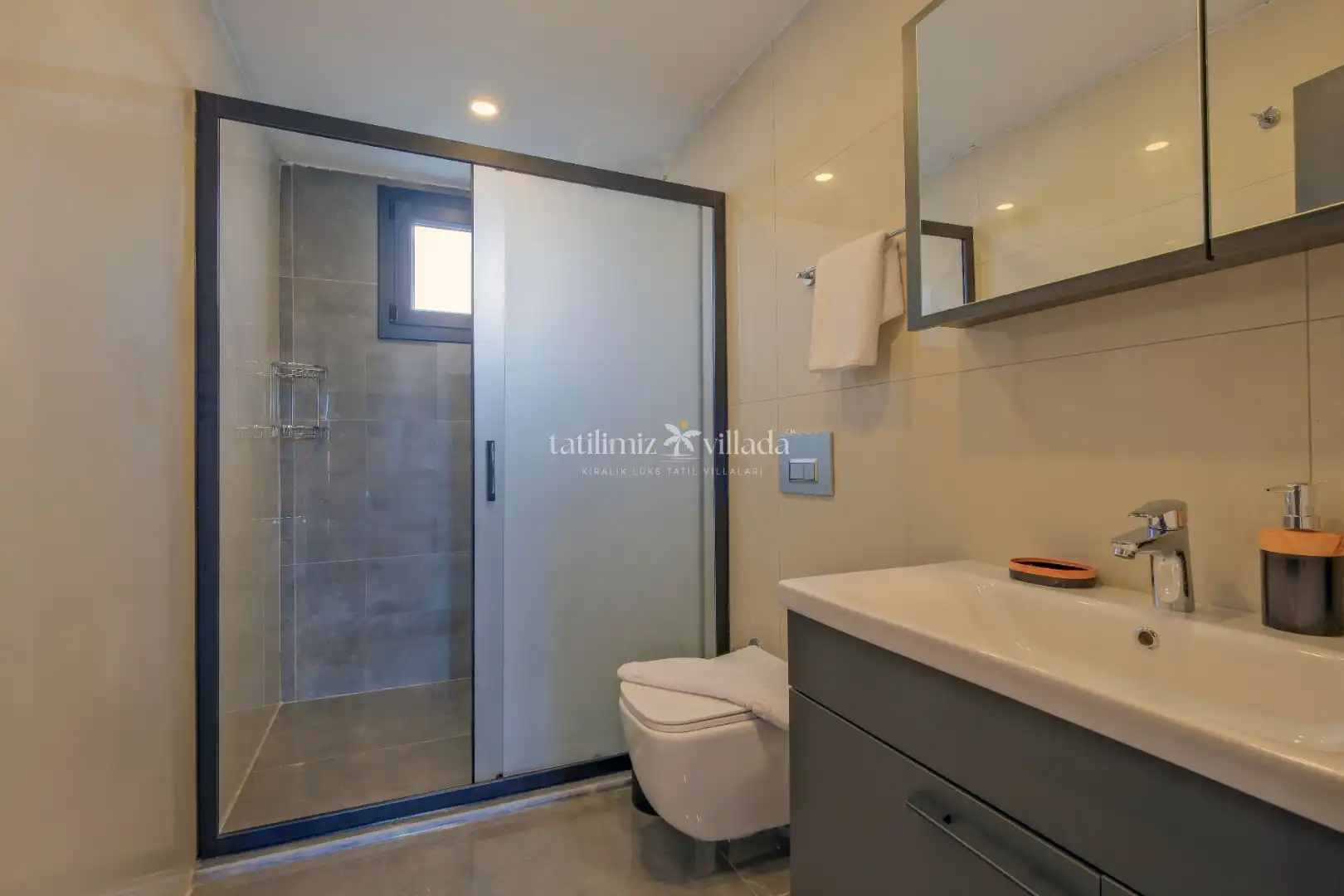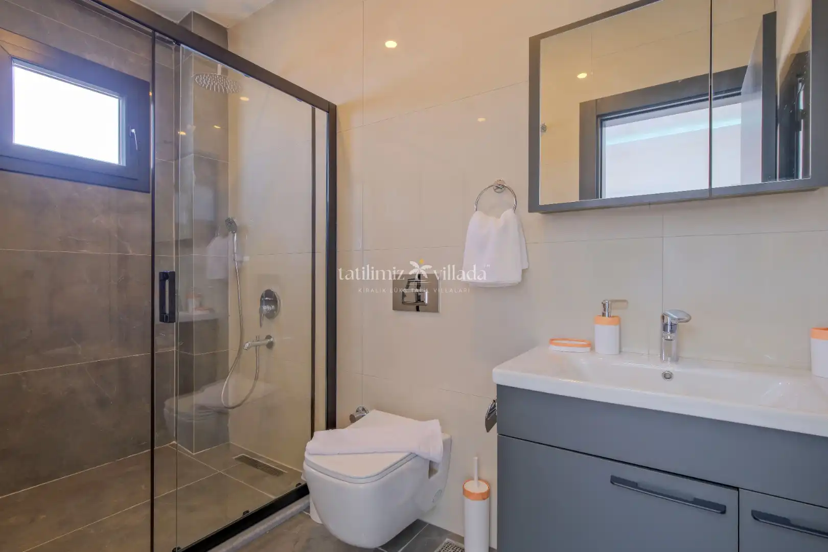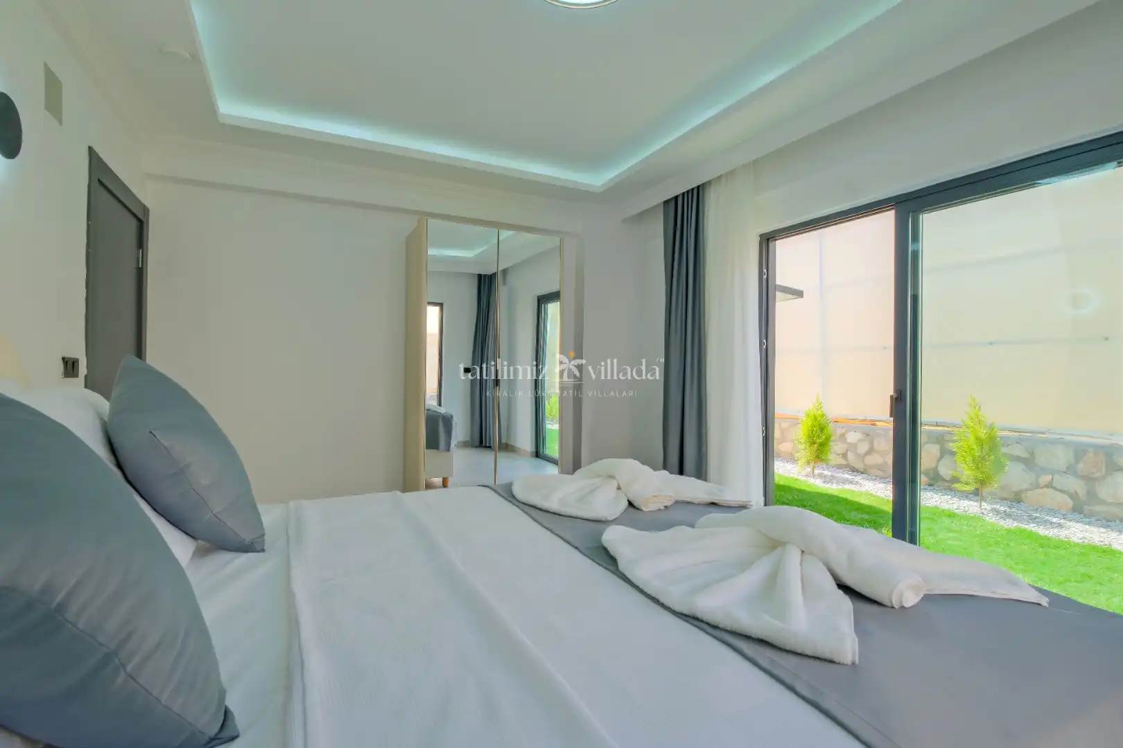 Villamızın her köşesi, misafirlerin konforunu ön planda tutacak şekilde özenle dizayn edilmiştir. Geniş bahçe alanı, özel yüzme havuzu ve rahat oturma grupları ile dış mekânda keyifli vakit geçirebilir, sevdiklerinizle birlikte unutulmaz anlar yaşayabilirsiniz. Villanın içerisinde modern mobilyalar, tam donanımlı bir mutfak, ferah salon ve konforlu yatak odaları bulunmaktadır.