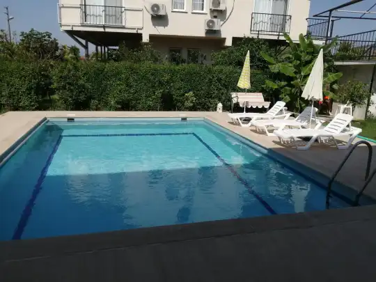 Villa Akman, özel yüzme havuzu ile yaz sıcaklarında serinlemek isteyen misafirlerine konforlu bir alan sunar. Geniş bahçesi ve oturma alanları, açık havada keyifli vakit geçirmek isteyenler için idealdir. Villada yer alan 5 adet yatak odası, kalabalık misafir grupları için yeterli kapasiteyi sunarken, şık ve kullanışlı mobilyalarla döşenmiş iç mekânlar ev rahatlığını aratmaz.