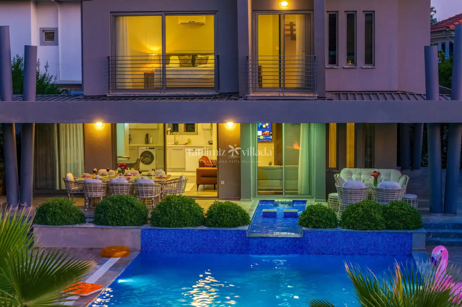 Merkezi konuma sahip kiralık villa seçenekleri arasında öne çıkan Villa Alveron, 4 yatak odası, modern mutfağı, ferah salonu ve müstakil bahçesi ile tatilinizi hem konforlu hem de pratik geçirmenizi sağlar. Barbekü alanı ve ateş çukuru gibi özel donanımlarıyla sevdiklerinizle unutulmaz anlar yaşayabileceğiniz ideal bir tatil villasıdır.