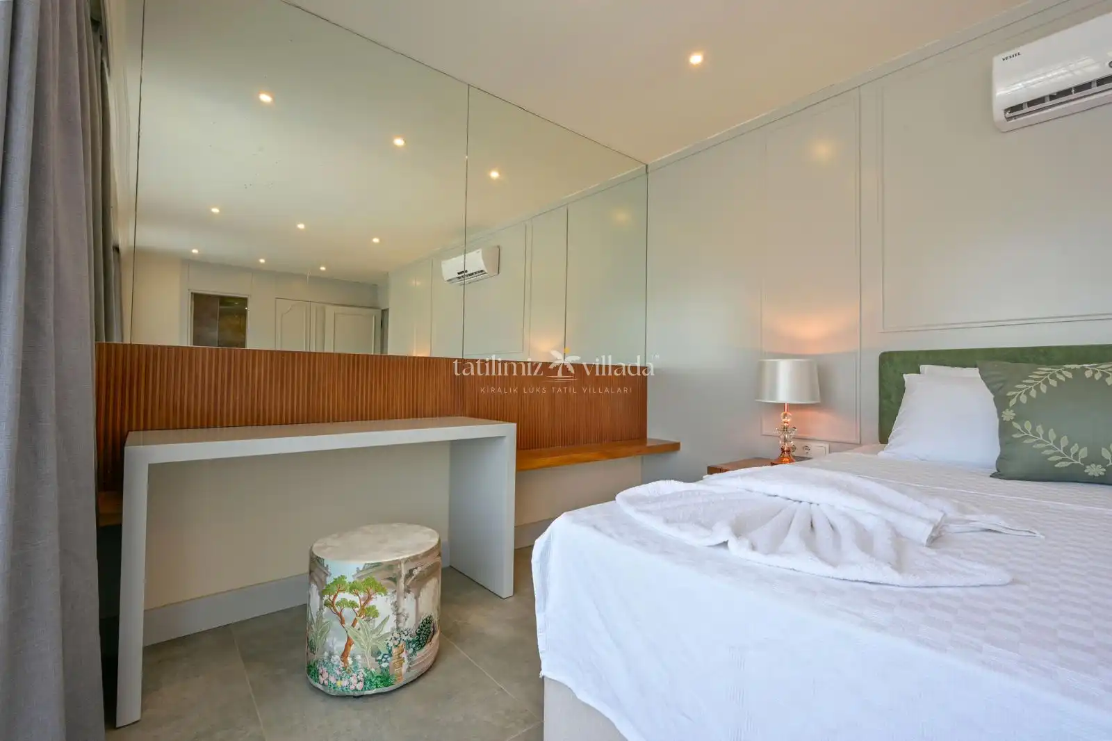 Fethiye’nin gözde tatil bölgelerinden biri olan Ölüdeniz mevkiinde konumlanan Villa Alveron, 4 yatak odası ve 8 kişilik konaklama kapasitesi ile çekirdek aileler ve arkadaş grupları için ideal bir tatil deneyimi sunmaktadır. Genişliği, şık mimarisi ve modern dekorasyonu ile estetik ve konforu bir arada yaşatan villa, tatilinizi unutulmaz kılmak için özenle tasarlanmıştır.