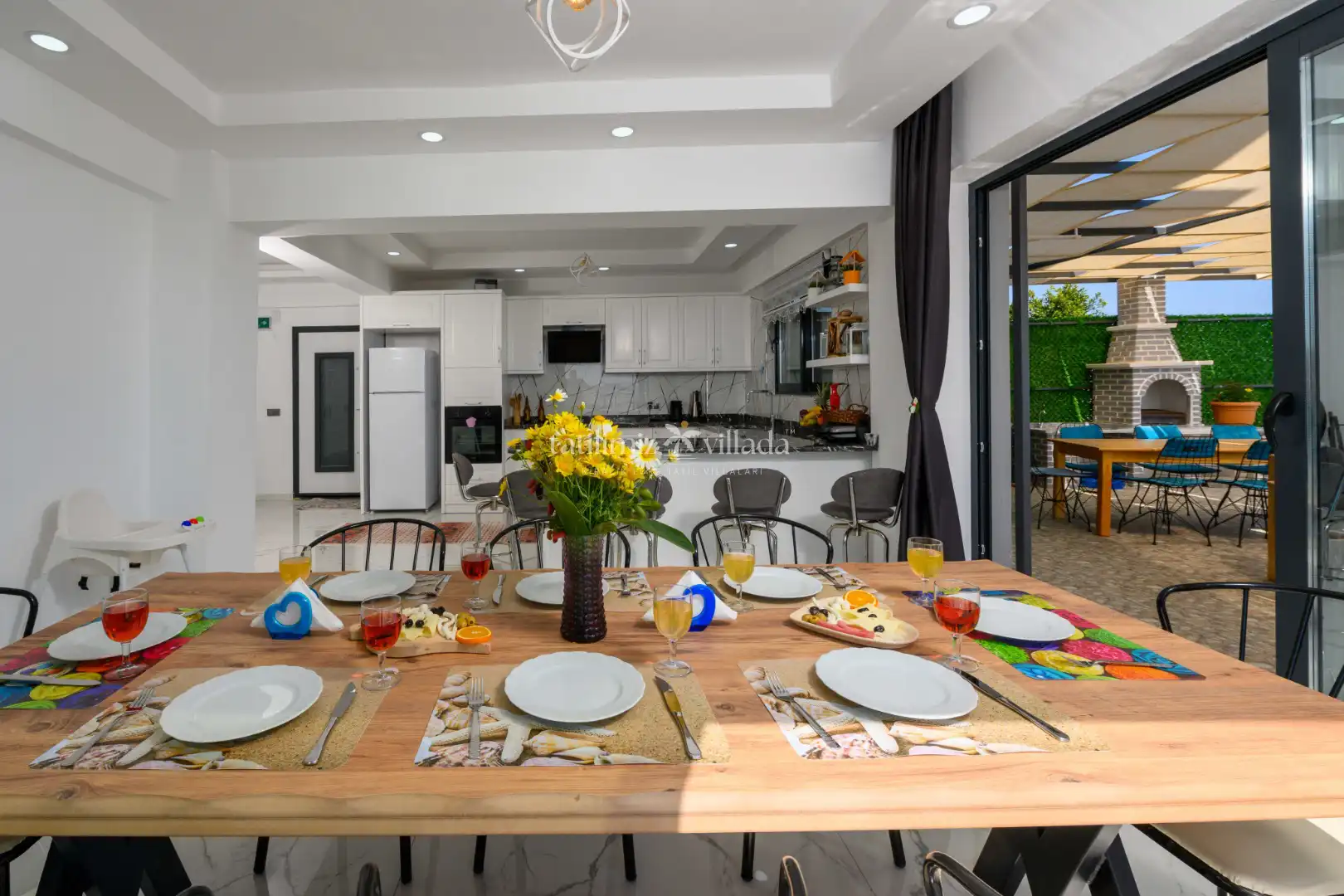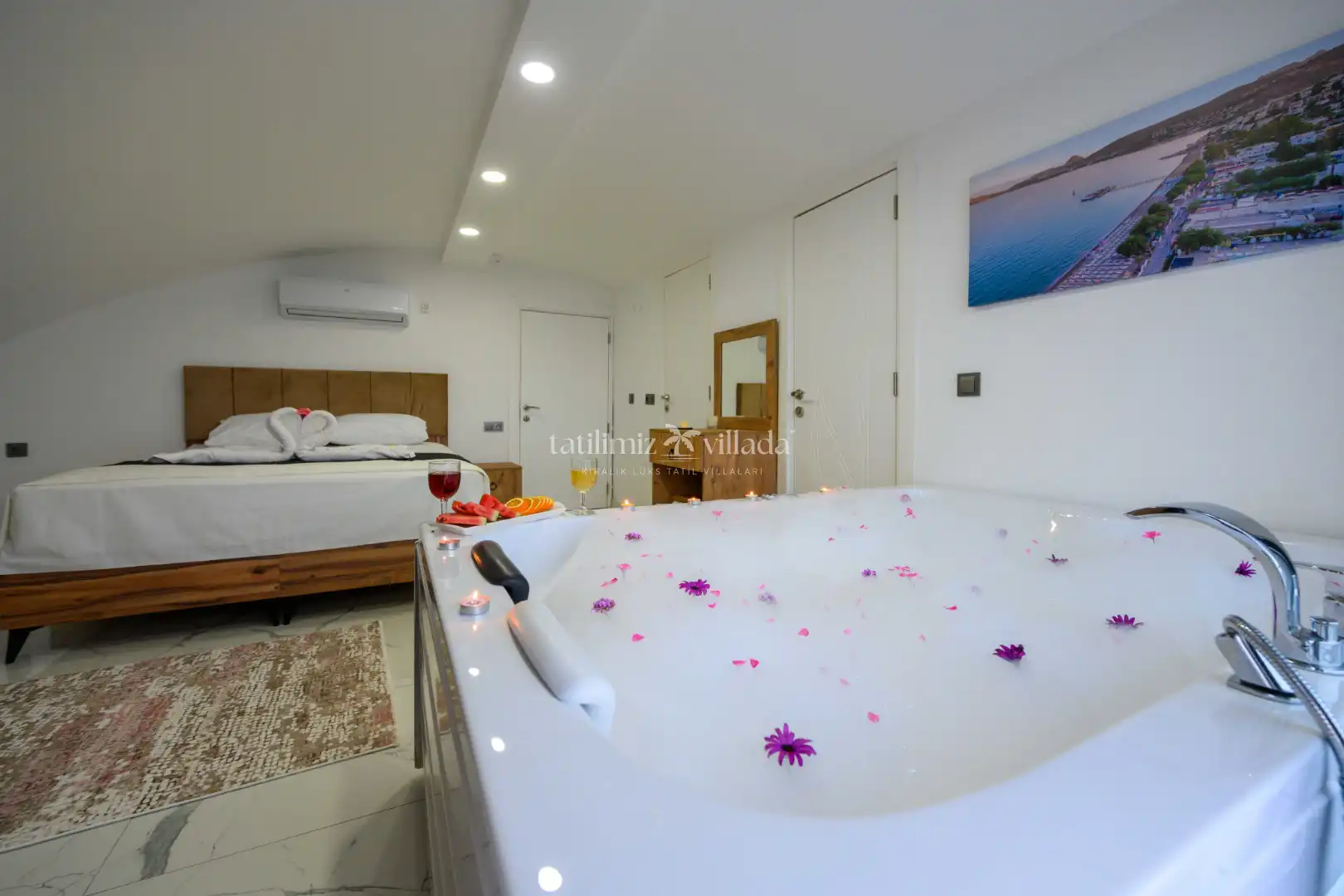 Geniş ve ferah yaşam alanlarına sahip olan Villa Arna, ailecek ya da sevdiklerinizle birlikte konforlu vakit geçirmenize olanak tanır. Jakuzi ve sauna gibi lüks detaylar tatilinizi daha da ayrıcalıklı hale getirirken, çocuk oyun alanı minik misafirler için eğlenceli anlar sunar. Doğayla iç içe bahçe alanı, huzurlu vakit geçirmek isteyenler için idealdir.