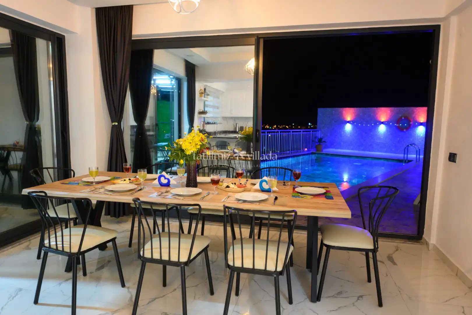 Bu lüks villa, Antalya Demre’de yer almakta olup kalabalık aileler ve arkadaş grupları için mükemmel bir konaklama seçeneği sunmaktadır.