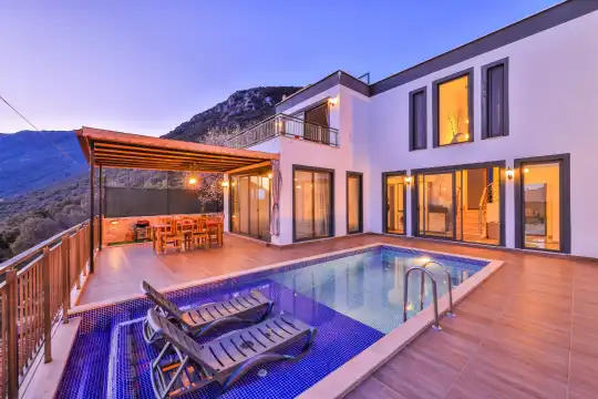 Villa Ases, Antalya'nın Kaş Çukurbağ Köyü'nde, yemyeşil doğa içerisinde konumlanmış, tam korunaklı özel havuzu ve muazzam vadi manzarası ile balayı çiftleri ve muhafazakar aileler için ideal bir tatil mekanıdır. Geniş havuz terasında doğanın kalbinde, huzurlu ve sakin bir tatil geçirebilirsiniz. İç tasarımındaki renkli detaylar ve modern dokunuşlarla konforunuz ön planda tutulmuştur. Villa Ases, doğa ile iç içe, aynı zamanda merkeze de oldukça yakın bir konumda yer alır; sadece 10 km mesafede bulunan merkeze ve plajlara 15 dakika gibi kısa bir sürede ulaşılabilir.