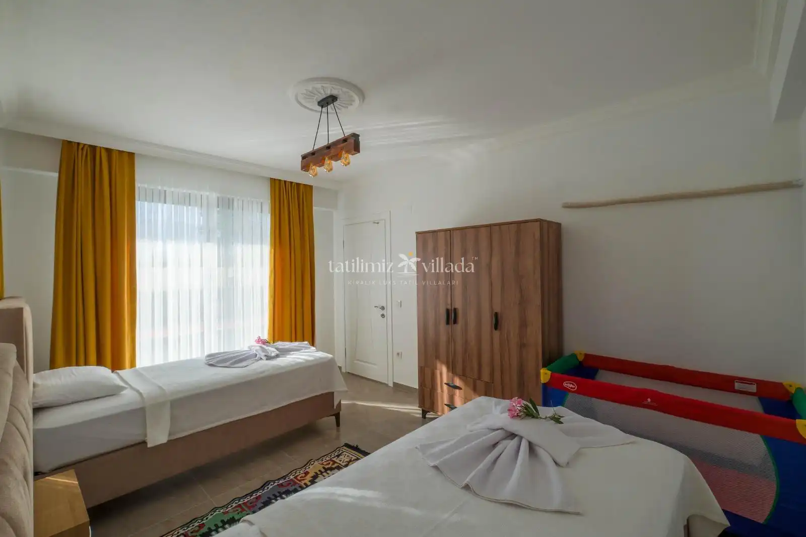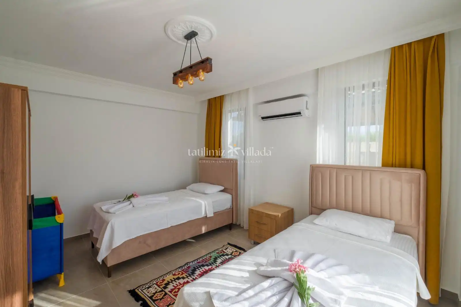 Villada 2 yatak odası ve 2 banyo, konforlu bir tatil için tüm detaylar düşünülerek tasarlanmıştır. Açık plan oturma ve mutfak alanı, ferah bir yaşam alanı sunarken, yatak odalarındaki konforlu yataklar misafirlerin rahat bir uyku deneyimi yaşamasını sağlar.