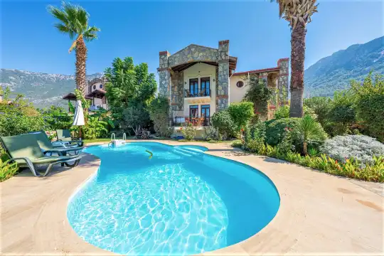 Fethiye’nin en çok tercih edilen tatil bölgelerinden biri olan Ovacık’ta yer alan Villa Aychin, taş mimarisiyle öne çıkan, 3 yatak odalı ve 1 salonlu özel bir tatil villasıdır. Toplamda 6 kişilik konaklama kapasitesine sahip olan villa, hem aileler hem de arkadaş grupları için ideal bir konaklama seçeneği sunmaktadır.