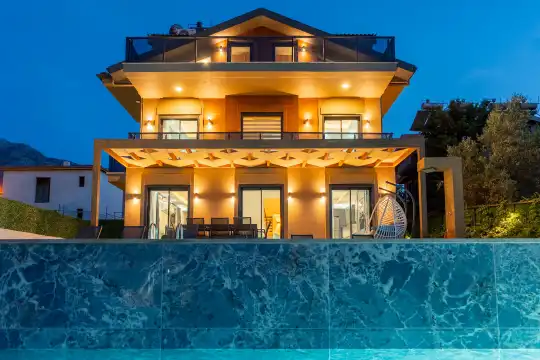 Villa Azure Luxe, Fethiye'nin gözde turizm merkezlerinden biri olan Ölüdeniz Ovacık mevkiinde konumlanmış, 4 yatak odalı ve 8 kişilik konaklama kapasitesine sahip, kalabalık aileler ve arkadaş grupları için ideal bir tatil villasıdır. Doğa ile iç içe, huzurlu ve sakin bir bölgede yer alan bu villa, hem konforlu hem de eğlenceli bir tatil deneyimi sunmaktadır.