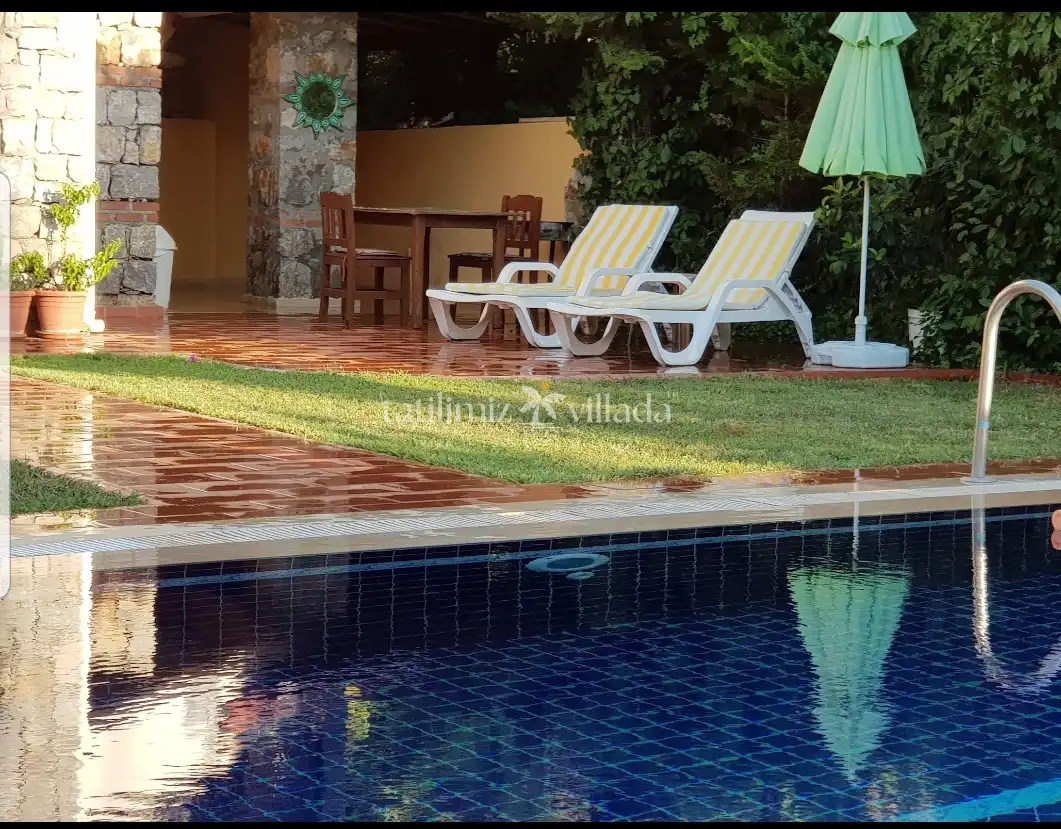 Villamızın geniş havuz terasında şezlong takımı, oturma grubu ve barbekü alanı yer almaktadır. Gün batımı manzarası eşliğinde keyifli vakit geçirebilir, sevdiklerinizle birlikte güzel anlar yaşayabilirsiniz.
