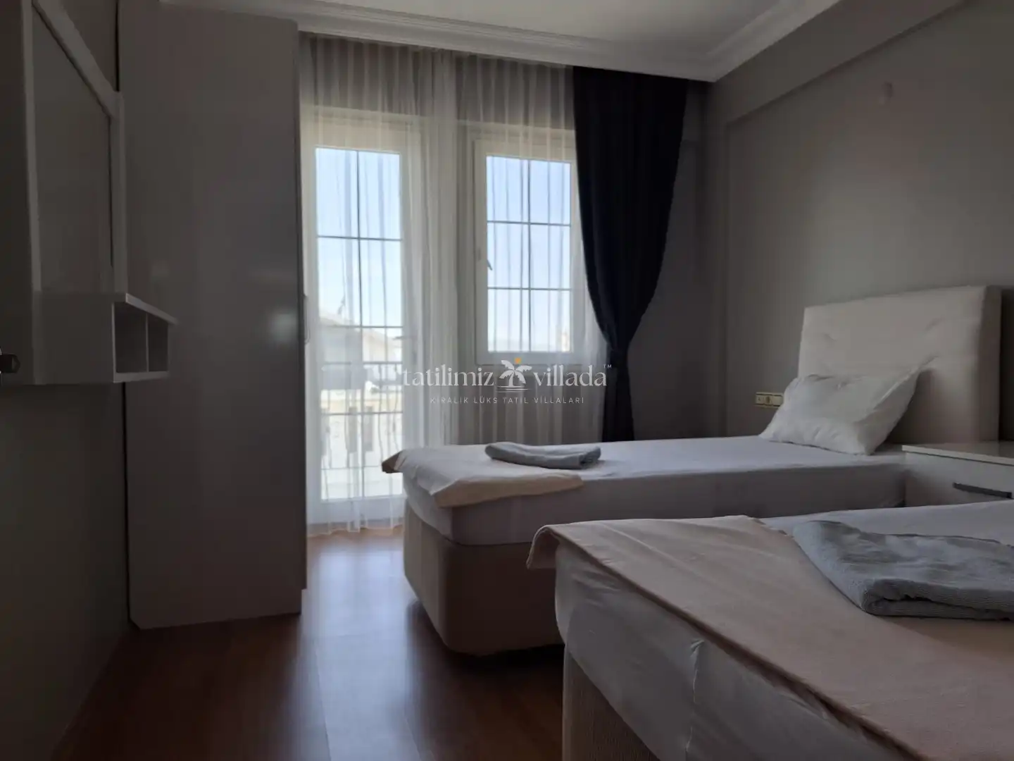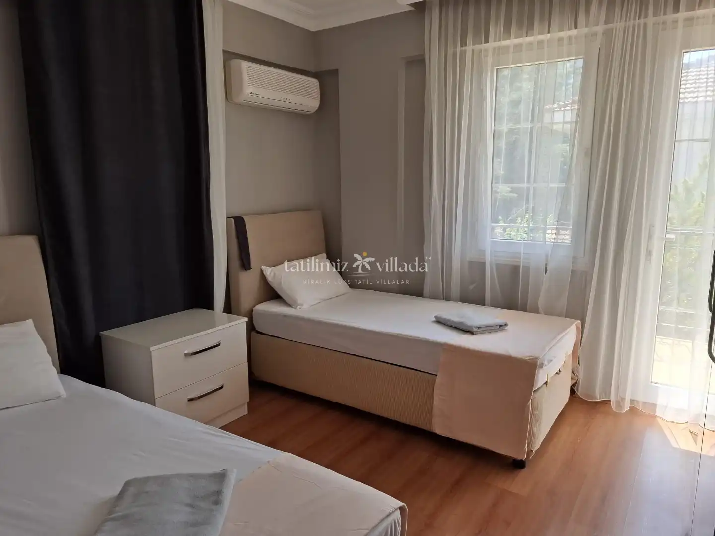 3 yatak odasına sahip olan villamız, 6 kişilik konaklama kapasitesi ile arkadaş grupları ve geniş aileler için oldukça uygun bir seçenektir. Modern tasarımı ve özenle dekore edilmiş iç mekânı sayesinde tatiliniz boyunca ihtiyaç duyabileceğiniz tüm detaylar düşünülmüştür.