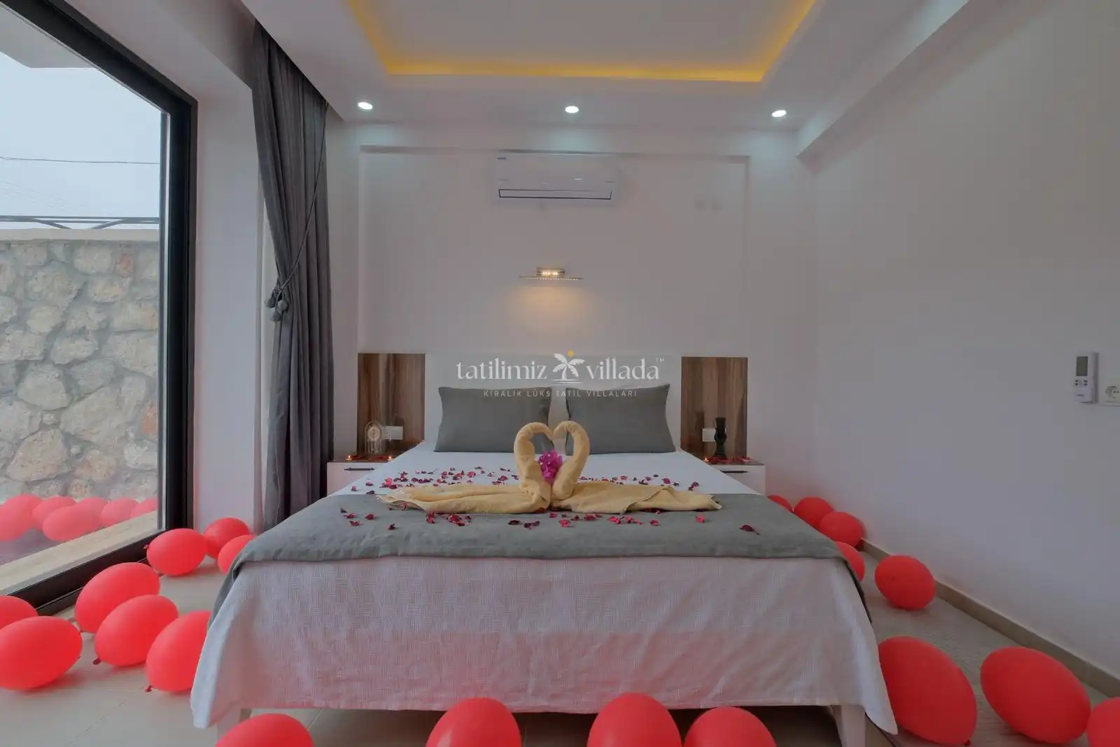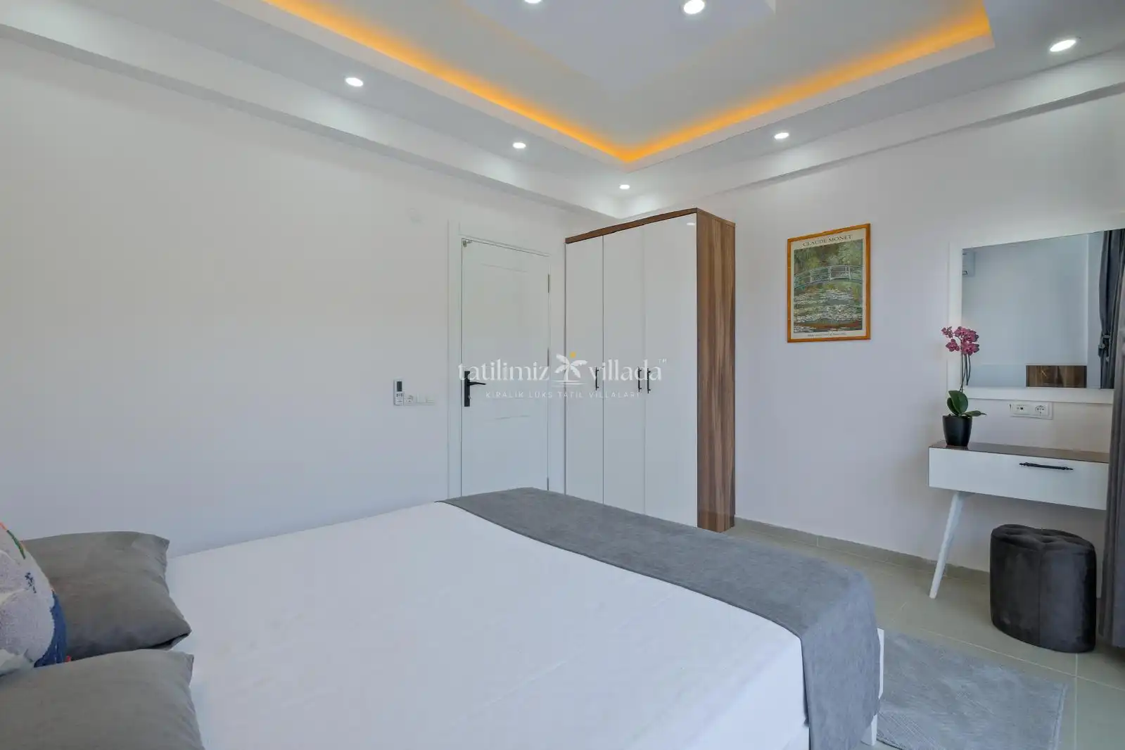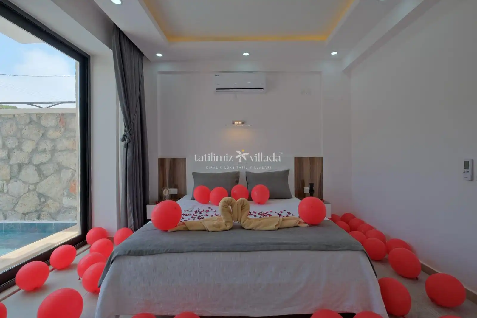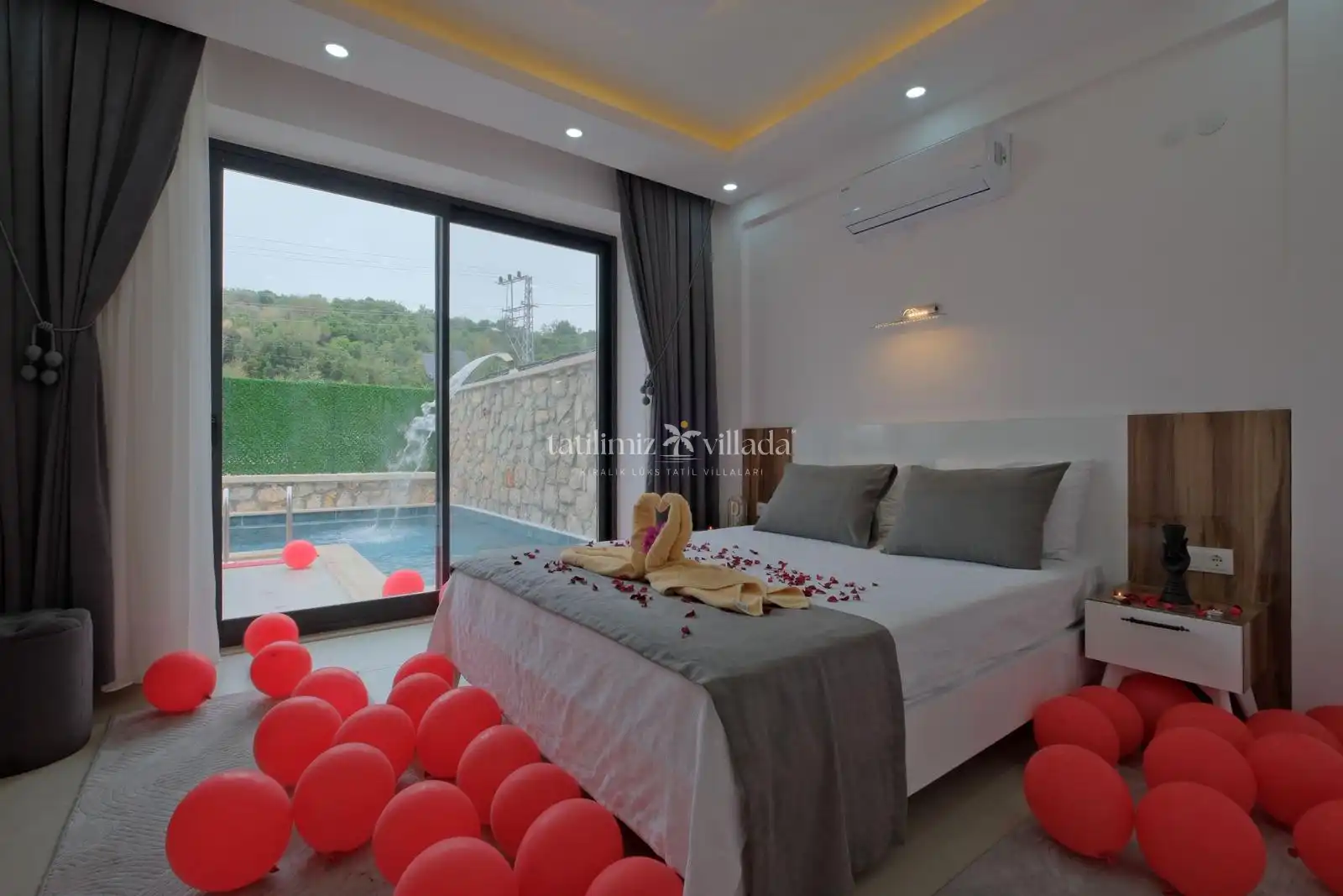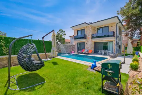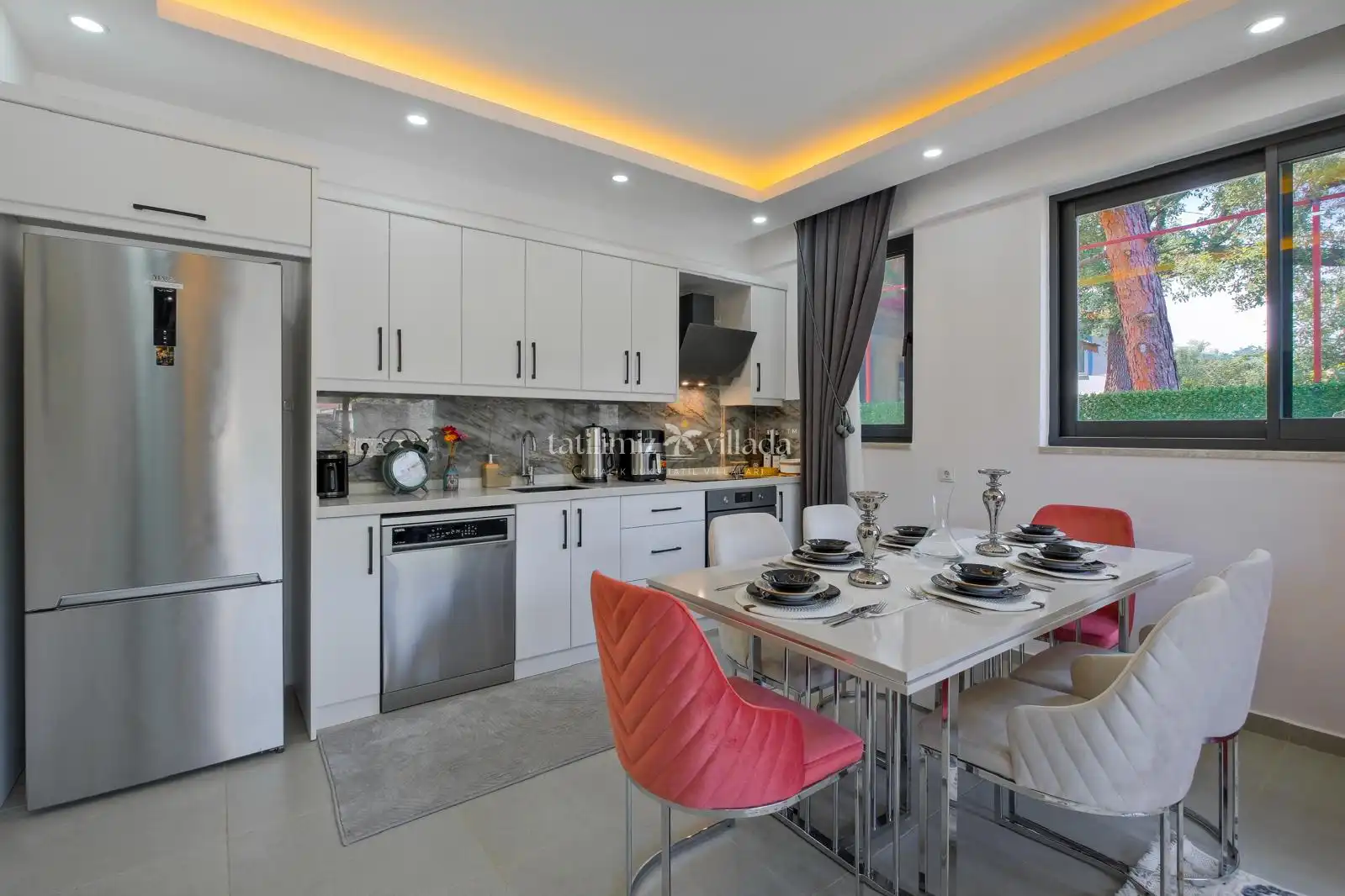 Öne çıkan özellikleri arasında yer alan korunaklı özel yüzme havuzu ve çocuk havuzu sayesinde özellikle mahremiyet arayan aileler için konforlu bir korunaklı havuzlu kiralık villa seçeneği sunmaktadır. Geniş bahçesi, ferah yaşam alanı ve modern donanımı ile keyifli bir tatil için tüm detaylar düşünülmüştür.