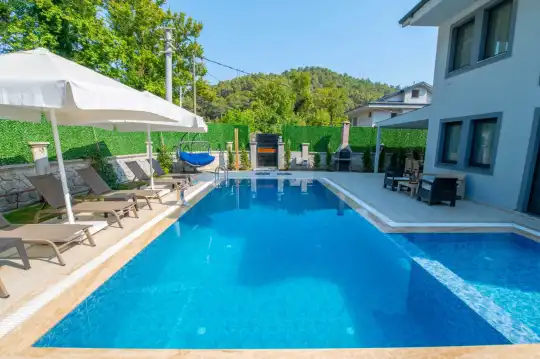Doğal güzelliklerle çevrili Villa Bel-La, sakin ve stresten uzak bir tatil geçirmek isteyenler için mükemmel bir seçenektir. Geniş bahçesi, yemyeşil alanları ve oturma köşeleri ile açık havada keyifli vakit geçirmek isteyen misafirlerine ferah bir yaşam alanı sunar. Çocuklu aileler düşünülerek tasarlanmış çocuk havuzu ise, minik misafirlerin güvenli bir şekilde eğlenmesine olanak tanır.