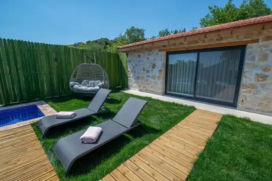 Tek yatak odalı ve 2 kişilik konaklama kapasitesine sahip olan Villa Beyina, özellikle balayı tatili yapmak isteyen çiftler için ideal bir ortam sağlar. Korunaklı yapısı sayesinde, tam mahremiyet içinde, dışarıdan hiçbir müdahaleye gerek kalmadan tatilin keyfini çıkarabilirsiniz. Özel yüzme havuzu, sadece size ait olup, sakin ve huzurlu bir atmosferde yüzmenin tadını çıkarabilirsiniz.