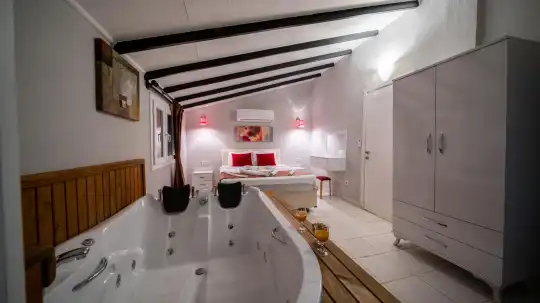 Villanın, havuz terasında kapasiteye uygun şezlong takımı, oturma grubu ve barbekü alanı bulunmakta olup yine havuz terasına açılan konforlu oturma odası ve tam donanımlı açık mutfağı; Birinci yatak odası içerisinde çift kişilik yatak, klima ve banyo bulunmaktadır. İkinci yatak odası içerisinde iki adet tek kişilik yatak ve klima bulunmaktadır. Üçüncü yatak odası suit oda tipinde olup, içerisinde çift kişilik yatak, klima, jakuzi ve küçük bir mutfağı bulunmaktadır Bağlamın tadına varacağınız, ayrıcalıklı bir tatilin keyfini sürebileceksiniz.