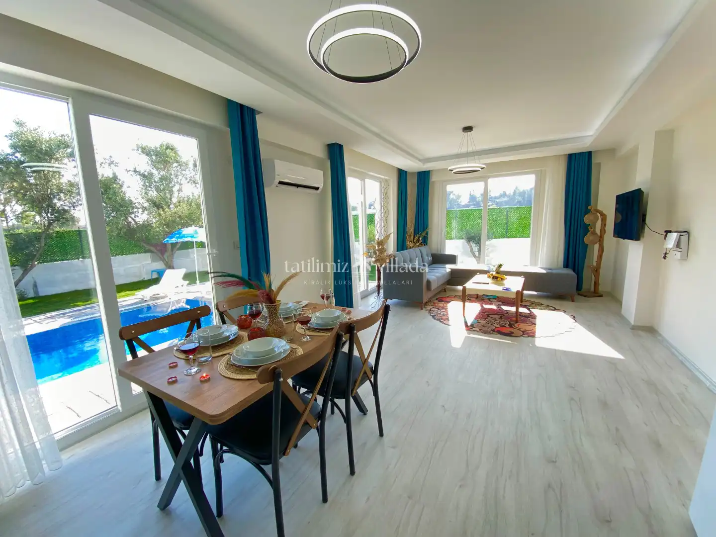 Tam donanımlı mutfak, modern oturma alanları ve ferah yaşam alanları ile Villa Bora, Fethiye kapalı havuzlu kiralık villa veya Fethiye kiralık villa arayan misafirler için de uygundur.