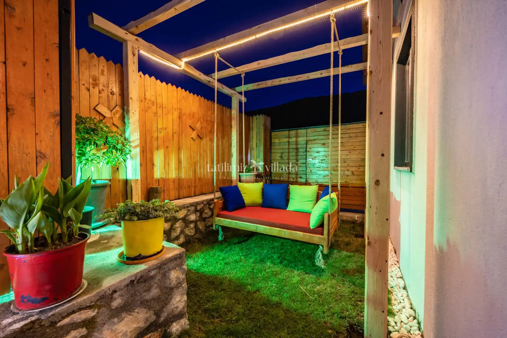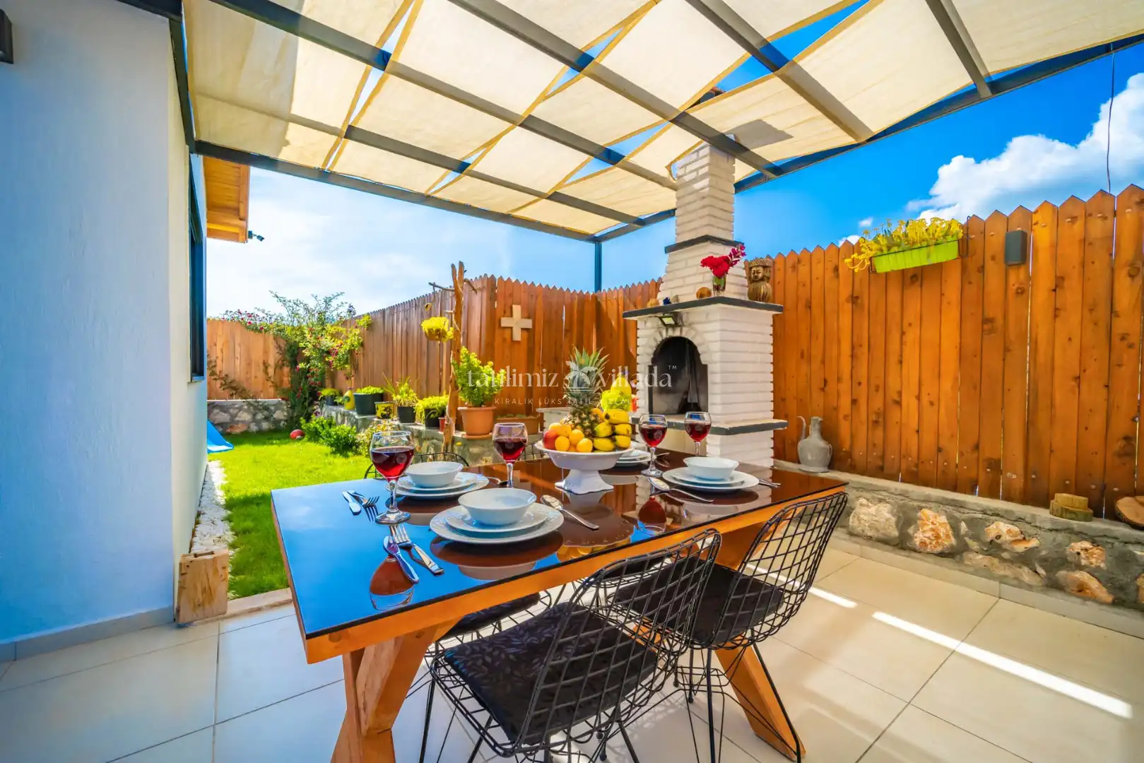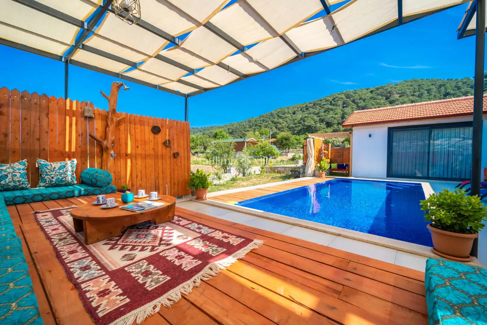 Villamızın özel yüzme havuzu, bahçesi ve havuz terası dışarıdan görünmeyecek şekilde muhafazalıdır. Bu özelliği sayesinde muhafazakar Kalkan kiralık villa arayışında olan misafirler için oldukça uygun bir konaklama alternatifidir. Güneşin ve doğanın tadını özgürce çıkarabilirsiniz.