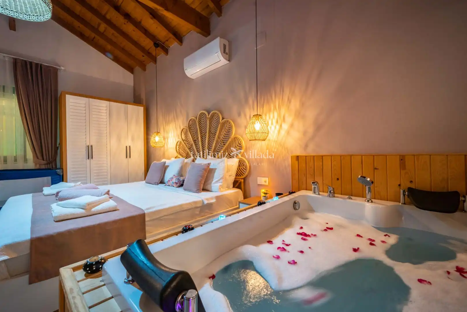 Toplamda 4 kişiye kadar konaklama kapasitesine sahip olan Villa Bus, konforlu ve modern detaylarla özenle dizayn edilmiştir. Büyük yatak odasında bulunan özel jakuzi, tatiliniz boyunca rahatlamanızı sağlayarak keyifli anlar yaşamanıza olanak tanır.