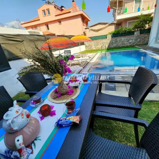 Çalış kiralık villaseçenekleri arasında öne çıkan Villa Can, Fethiye’de aileler için özel havuzlu ve merkezi bir tatil seçeneği sunar. Plaja yakın kiralık villaarayan misafirler için Villa Can, Çalış Plajı’na kısa sürüş mesafesi ve merkezi konumu sayesinde deniz keyfini zahmetsiz hale getirir.