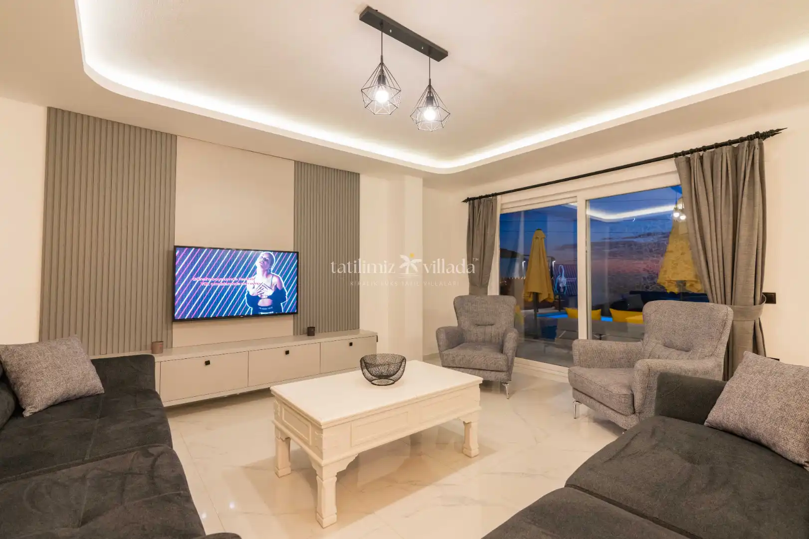 Villada yer alan özel yüzme havuzu, jakuzili ana yatak odası ve tam donanımlı mutfak, misafirlere ev rahatlığında bir konaklama deneyimi sunar. Geniş terası, deniz manzaralı oturma alanı ve barbekü köşesiyle sevdiklerinizle birlikte keyifli vakitler geçirebilirsiniz. Kalkan merkeze ve plajlara kısa bir sürüş mesafesinde bulunan Villa Captain Lucky, hem sakin bir tatil arayanlar hem de Kalkan’ın canlı atmosferini keşfetmek isteyenler için ideal bir seçenektir.