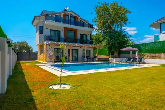 Villa, dış alanda özel yüzme havuzu ve güneşlenme terasına sahiptir. Bahçe alanı çocuklu aileler için uygundur ve dış mekan oturma grupları sayesinde keyifli vakit geçirmek mümkündür. Konumu itibarıyla doğa ile iç içe bir ortam sunan villa, aynı zamanda Hisarönü merkeze ve Ölüdeniz Plajı gibi önemli noktalara araçla kısa sürede ulaşılabilecek mesafededir.