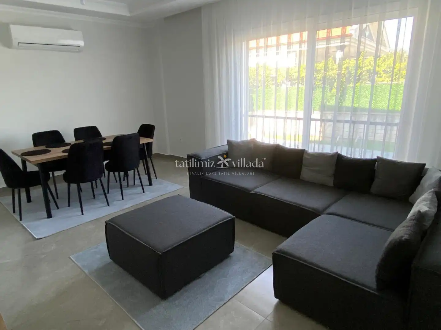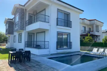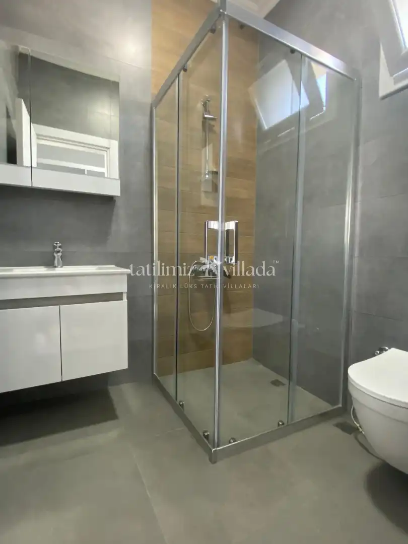 Villanın geniş ve aydınlık salonu, tam donanımlı mutfağı ve rahat oturma alanları, ev konforunu tatilde de yaşamanıza olanak tanır. Toplam 4 yatak odası ile 8 kişiye kadar konaklama imkânı sağlar.