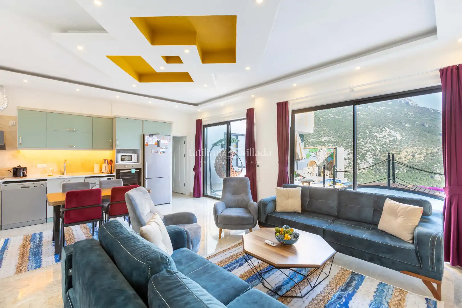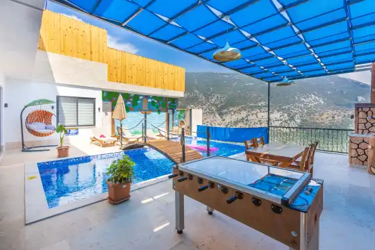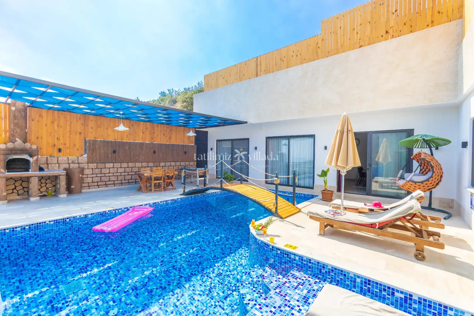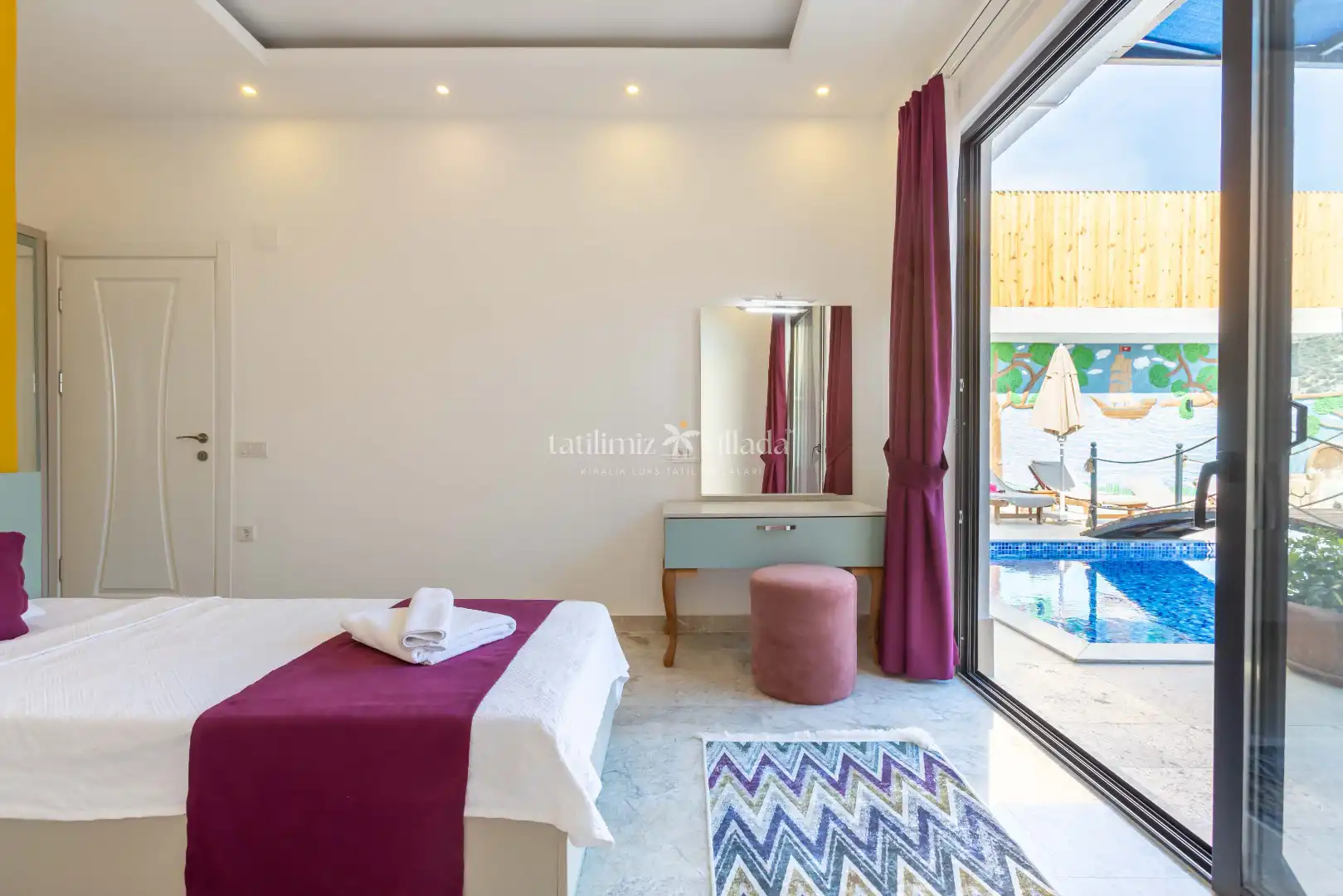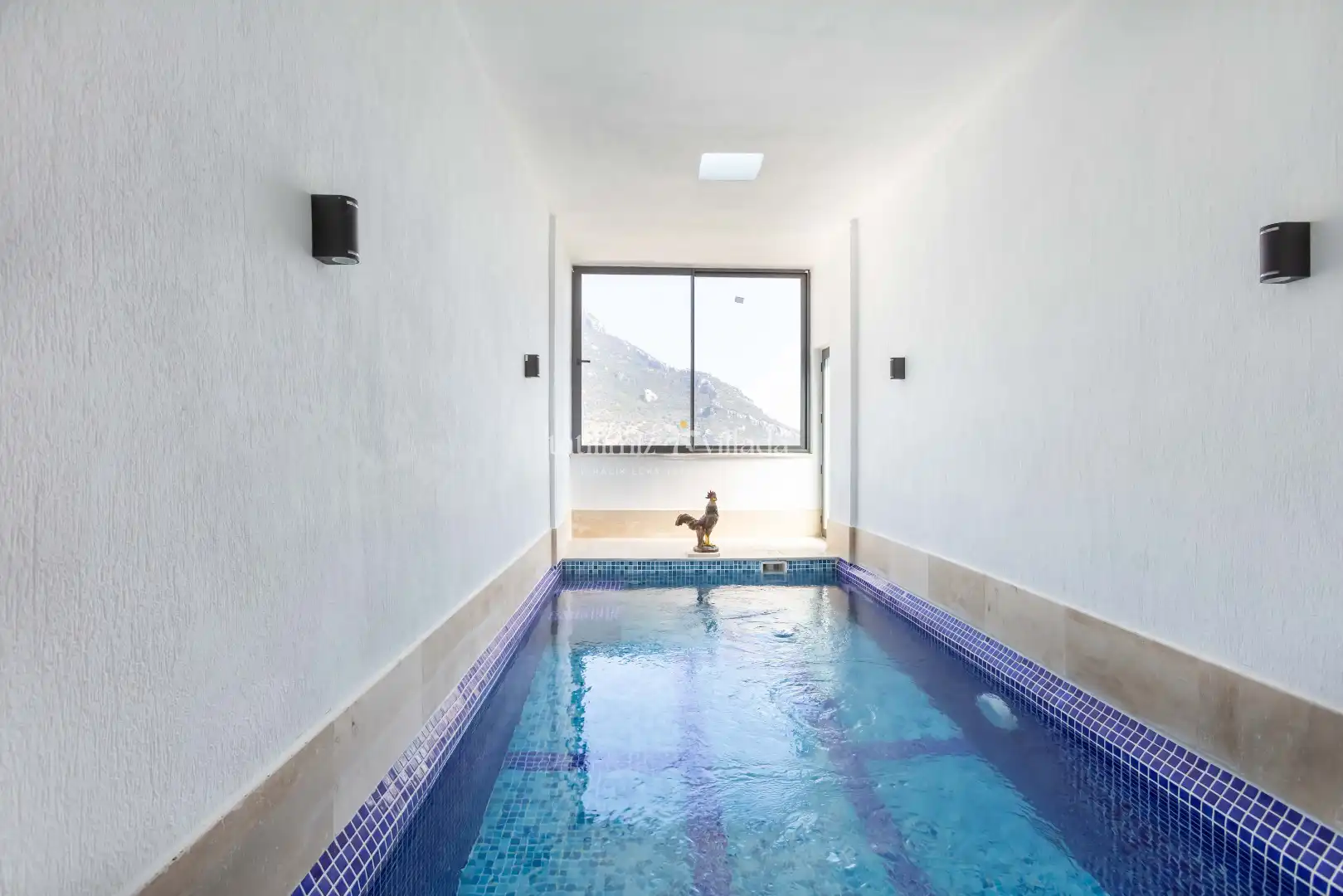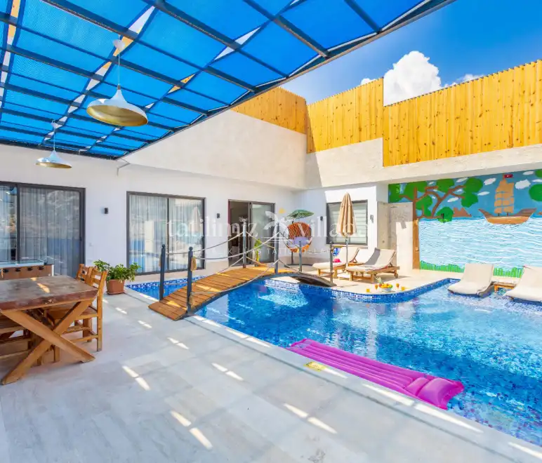 Konforlu ve modern şekilde tasarlanan iç mekânı sayesinde hem yaz hem de kış aylarında keyifli bir konaklama imkânı sunmaktadır. Villada bulunan ısıtmalı kapalı havuz sayesinde serin dönemlerde dahi havuz keyfi yaşayabilirsiniz. Özellikle Kalkan kiralık villa ve Kalkan İslamlar kiralık villa arayışında olan misafirler için ayrıcalıklı bir tatil alternatifi sunmaktadır.