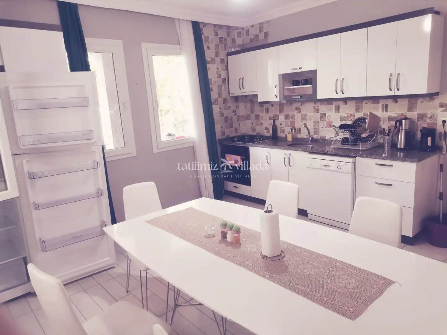 Villa Dinç, Fethiye Karagedik mevkiinde yer alan 4+1 geniş ve konforlu yapısıyla hem aileler hem de kalabalık gruplar için ideal bir tatil seçeneği sunmaktadır. Modern mimarisi, ferah kullanım alanları ve sakin konumu ile misafirlerine huzurlu bir konaklama deneyimi sağlar. Villamızın iç tasarımı şık ve işlevsel detaylarla donatılmış olup, her odada rahat bir yaşam alanı oluşturulmuştur. Geniş salon bölümü, konforlu oturma grupları ve tamamen donanımlı mutfağı ile hem dinlenme hem de yemek hazırlama süreçleri misafirler için oldukça kolaydır. 4 adet yatak odasında konforlu yataklar, kaliteli tekstil ürünleri ve ihtiyaç duyulabilecek mobilyalar yer alırken, villanın genelinde ferah bir atmosfer hâkimdir.