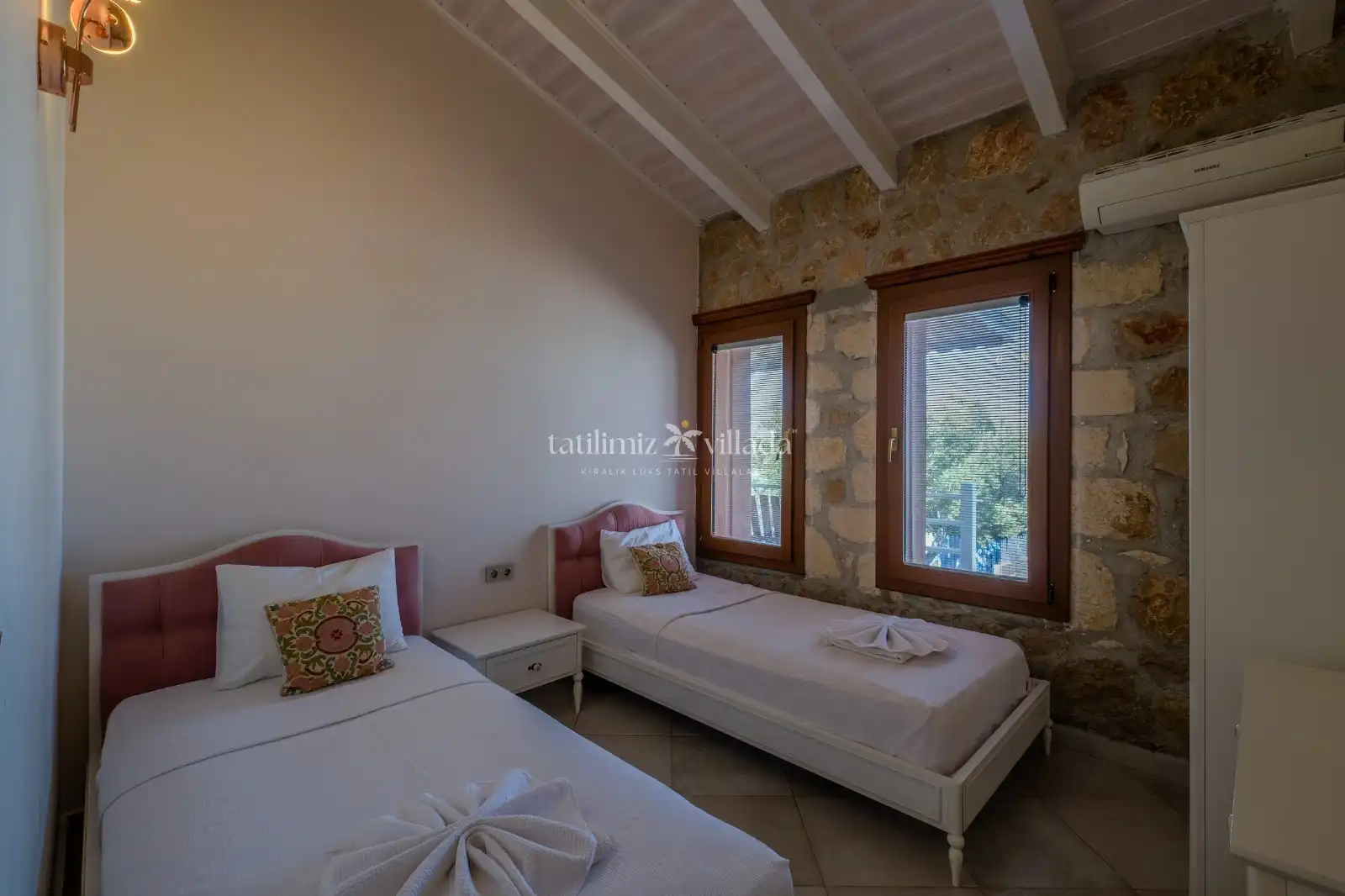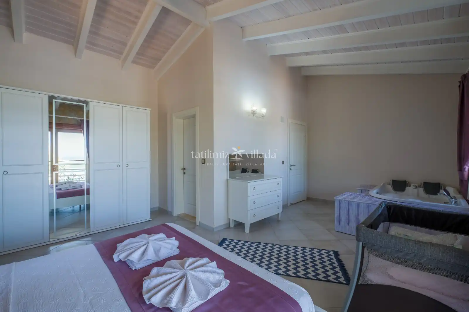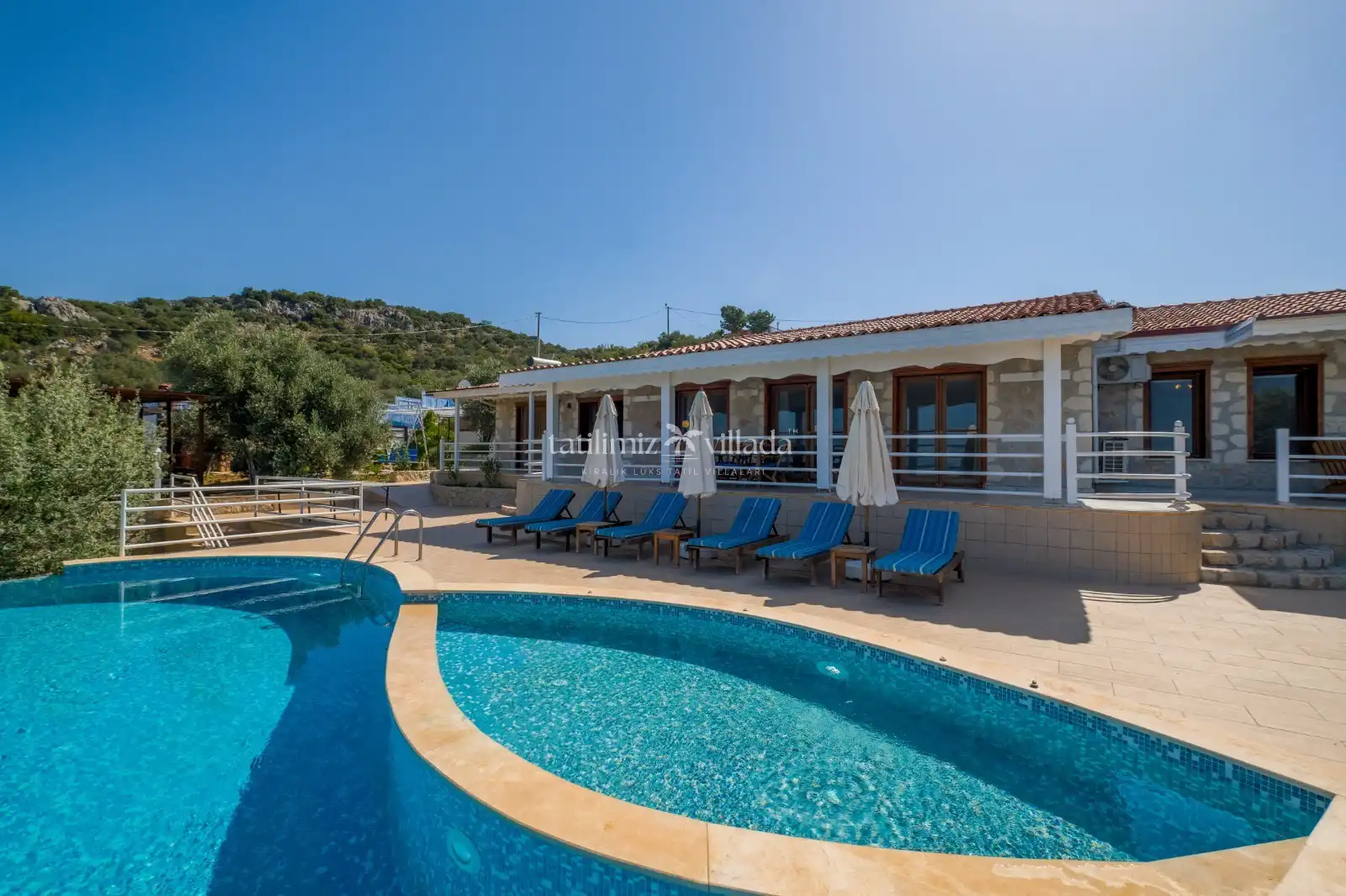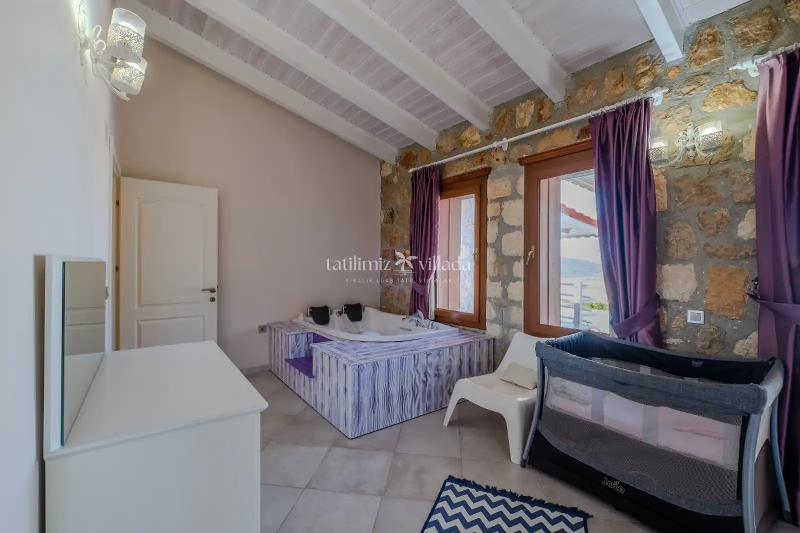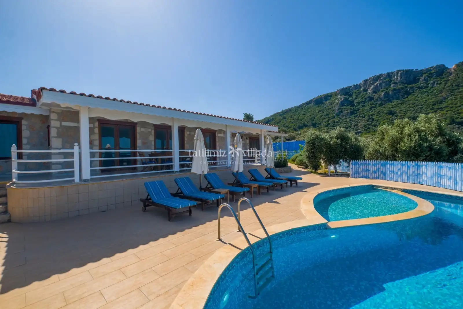 Kiralık villa arayan misafirler için Villa Dreams 1, jakuzili odaları, korunaklı havuz alanı, geniş bahçesi ve tam donanımlı mutfağı ile tatiliniz boyunca hem evinizin rahatlığını hem de ekstra konforu yaşamanızı sağlar. Özellikle deniz manzaralı odaları sayesinde gün boyu büyüleyici manzaralar eşliğinde dinlenebilir, mahremiyet ve sakinlik içinde tatil yapabilirsiniz.