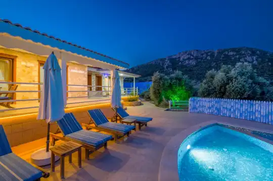 Kalkan / Üzümlü, bölgesinde yer alan bu villa, kiralık-villa deneyimi arayanlar için ideal bir tercihtir. Villa Dreams 1, eşsiz bölgenin huzurlu atmosferini, deniz manzaralı odaları ve jakuzili özel alanları ile birleştirerek unutulmaz bir tatil deneyimi sunar. Doğa, konfor ve mahremiyeti bir arada arayan misafirler için Villa Dreams 1, hem bölge hem de özellik açısından öne çıkan mükemmel bir seçenektir.