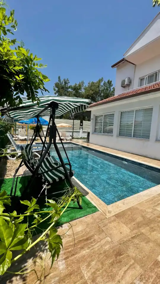 Villanın dış kısmında özel yüzme havuzu ve peyzajlı bir bahçe yer almaktadır. Bahçede oturma alanı ve barbekü köşesi gibi sosyal kullanım alanları da bulunmaktadır. Yüzme havuzu hem yetişkinler hem çocuklar için kullanıma uygundur.
