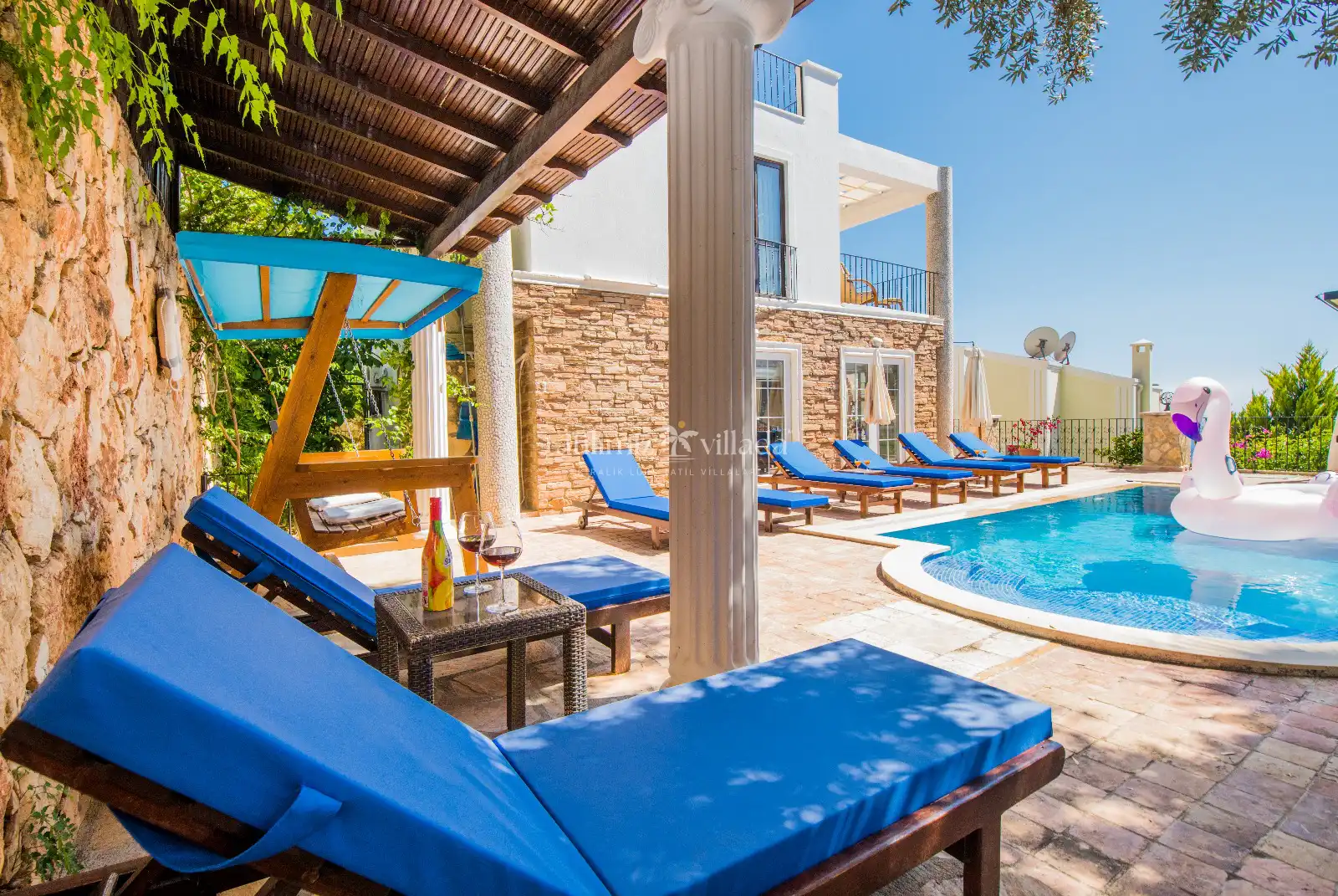 TatilimizVillada danVilla Efsane, Kalkan Kızıltaş mevkiinde konumlanan muhteşem deniz ve doğa manzarasına sahip, özel havuzlu ve jakuzili villamızdır. Villamızın iç dizaynı misafirlerimizin memnuniyeti adına konforlu bir şekilde tasarlanmıştır. 5 adet yatak odasına sahip olan villamız 11 kişiye konaklama imkanı sağlamaktadır. Ferah havuz ve çatı terası bulunan villamız, kalabalık aileler ve arkadaş gruplarına oldukça uygundur. Terasta bulunan jakuzi sayesinde rahatlayabilir ve muhteşem deniz manzarasının tadını çıkarabilirsiniz.