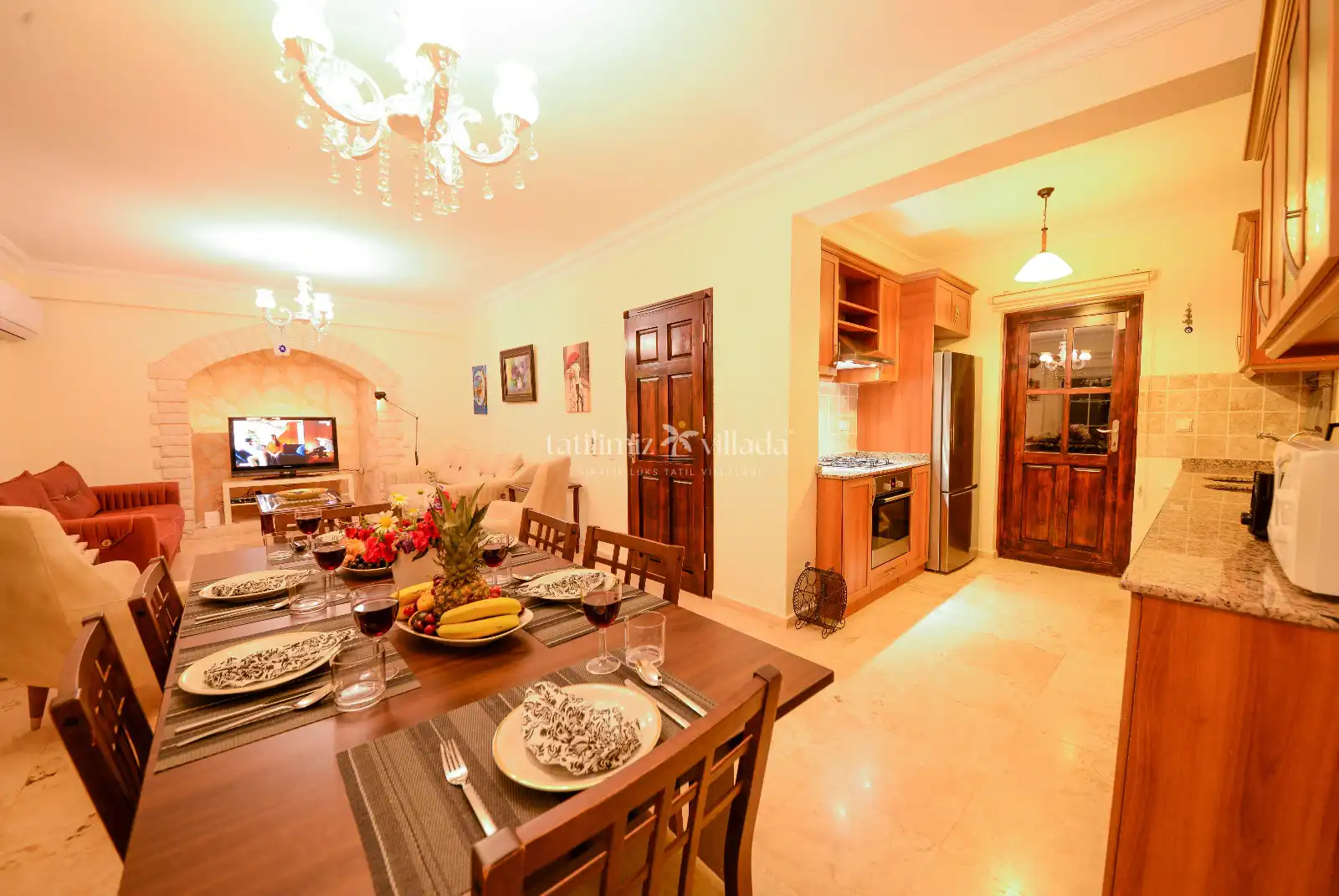 Mutfak; Modern bir mimariyle tasarlanmış olan villamızda, açık ankestre mutfak, beyaz eşyalar tüm mutfak araç gereçleri ve küçük ev aletleri bulunmaktadır.Tüpgaz, elektrik,su ,wi-fi kullanımları fiyata dahildir.