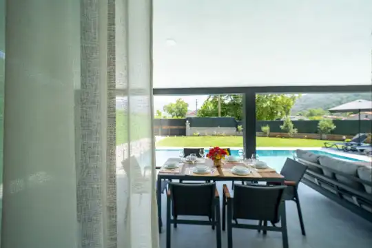 Villamızın öne çıkan özelliklerinden biri çocuklara özel olarak tasarlanmış ayrı bir havuz alanına sahip olmasıdır. Bu sayede aileler tatillerini hem güvenli hem de keyifli bir şekilde geçirebilir. Bahçe alanı yemyeşil doğa ile iç içe olup, sakinliği ve huzuru bir arada sunar. Geniş veranda, havuz kenarı oturma alanı ve barbekü köşesi ile açık havada vakit geçirmek isteyen misafirler için ideal alanlar sunulmuştur.
