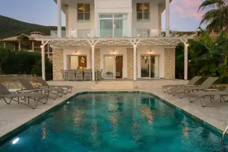 Deniz ve doğanın eşsiz uyumunu bir arada sunan, Türkiye’nin en özel tatil bölgelerinden biri olan Kalkan Kalamar mevkiinde konumlanan Villa Elana Beyaz 1, ayrıcalıklı özellikleriyle unutulmaz bir kiralık villa tatili sunmaktadır. Denize sıfır konumu, eşsiz deniz manzaralı kiralık villa yapısı ve yalnızca villa misafirlerine özel olarak tasarlanmış denize girme platformu ile benzersiz bir tatil deneyimi sizleri bekliyor.