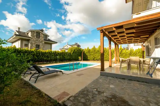 Doğayla iç içe bir konumda yer alan villa, ferah ve şık iç dekorasyonuyla öne çıkar. Her detayda konfor düşünülerek dizayn edilen villa içerisinde ihtiyacınız olan tüm mutfak ekipmanları, oturma grubu, yemek masası ve konaklamanızı kolaylaştıracak donanımlar mevcuttur. Villanın kendine ait özel yüzme havuzu ve güneşlenme alanı bulunmakta olup, bahçesi bakımlı ve keyifli vakit geçirmeye uygundur.