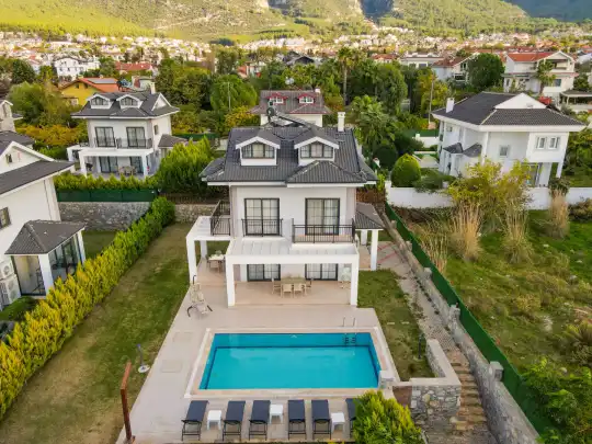Villa Era 4, Fethiye’nin popüler tatil noktalarından biri olan Ölüdeniz Ovacık mevkiinde yer alan 4+1 geniş ve konforlu bir villadır. Modern mimarisi, ferah yaşam alanları ve doğayla iç içe konumu ile kalabalık aileler ve arkadaş grupları için ideal bir tatil seçeneği sunar. Villa toplamda 4 yatak odası ve 1 geniş salon ile 8 kişiye kadar konaklama kapasitesine sahiptir.