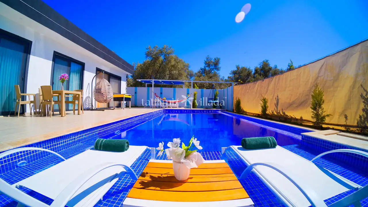 2021 yılında yeni yapı olarak inşa edilen Villa Es, modern mimarisi ve birinci sınıf kaliteye sahip mobilyalarıyla misafirlerine üst düzey bir konaklama sunmaktadır. Doğa manzarasıyla iç içe olan villamız, sakin atmosferi ve temiz havasıyla huzurlu bir kaş kiralık villa arayan misafirler için ideal bir tercihtir. Havuz başında kahvaltı yapabilir, gün boyunca doğanın keyfini çıkarabilirsiniz.