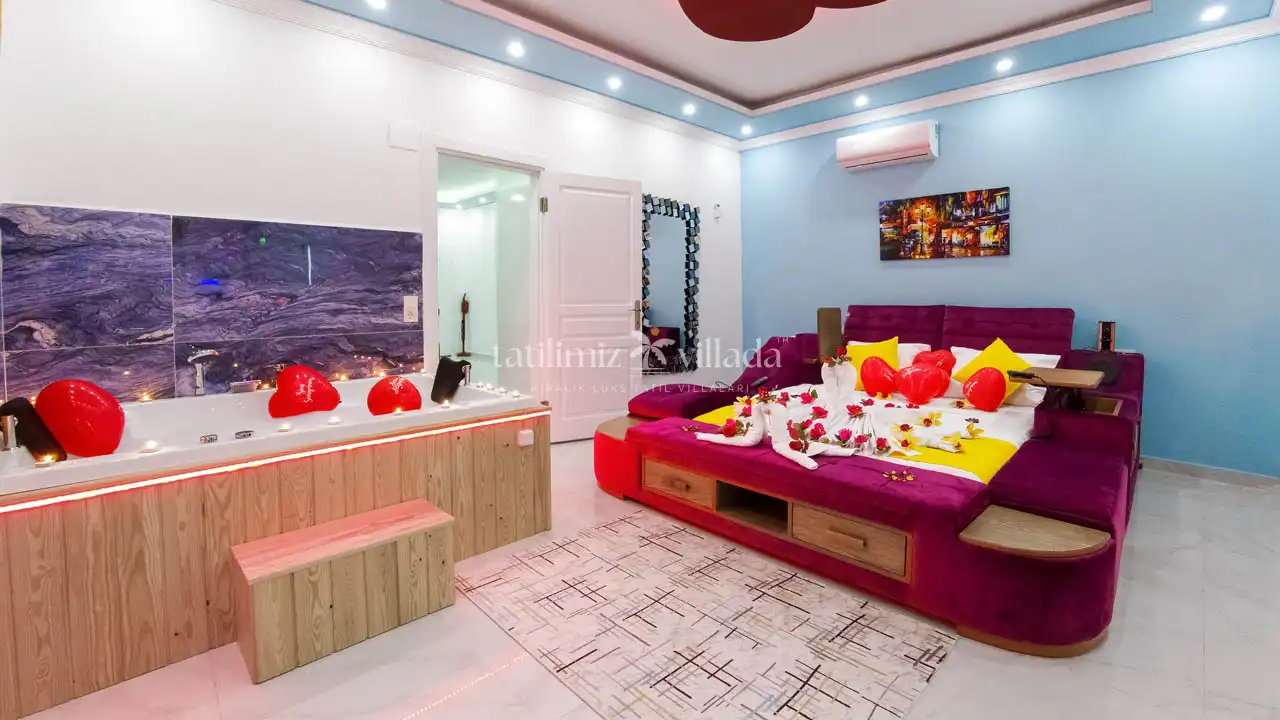 Villa Es, Antalya Kaş Kalkan’ın Üzümlü mevkiinde konumlanmış, balayı çiftleri için özel olarak tasarlanmış lüks bir kaş kiralık villa seçeneğidir. 2 kişilik konaklama kapasitesine sahip olan villamızda 1 adet yatak odası ve ebeveyn banyosu bulunmaktadır. Yatak odasında yer alan jakuzi sayesinde romantik ve konforlu bir tatil deneyimi yaşayabilirsiniz.