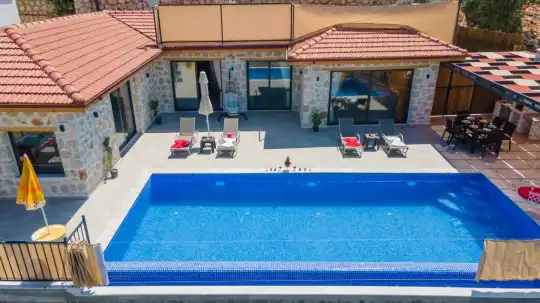 Villamızın havuz ve bahçe kısmı korunaklıdır olup havuz keyfini rahatça çıkarmanızı sağlar ve villamızda bulunan size özel havuzu ve jakuzi sayesinde ruhunuzu ve bedeninizi dinlendirme fırsatı bulacaksınız. Moderndizayna sahip olan . Geniş bahçe alanına sahip olup salıncak, langırt gibi aktivitesi ile çocuklu aileler için en ideal villa seçeneklerinden biridir. güzel bir tatil geçirmeniz için özenle dizayn edilmiş villamıza siz değerli misafirlerimizi beklemekteyiz.