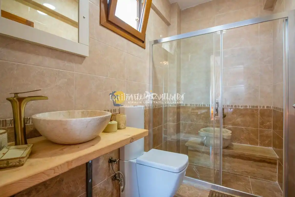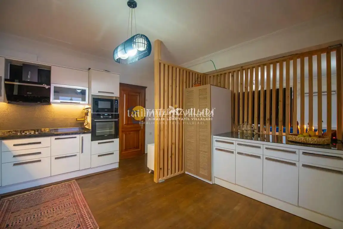 Toplam 3 yatak odası ve 6 kişi konaklama kapasitesi ile villa, balayı çiftleri ve aileler için idealdir. Villada bulunan jakuzili alan, günün yorgunluğunu atmanız ve tatilinizi daha keyifli hale getirmeniz için özel olarak tasarlanmıştır. Geniş ve ferah yaşam alanları, modern mobilyalar ve özenli dekorasyon ile tatil boyunca ev konforunu hissedebilirsiniz.