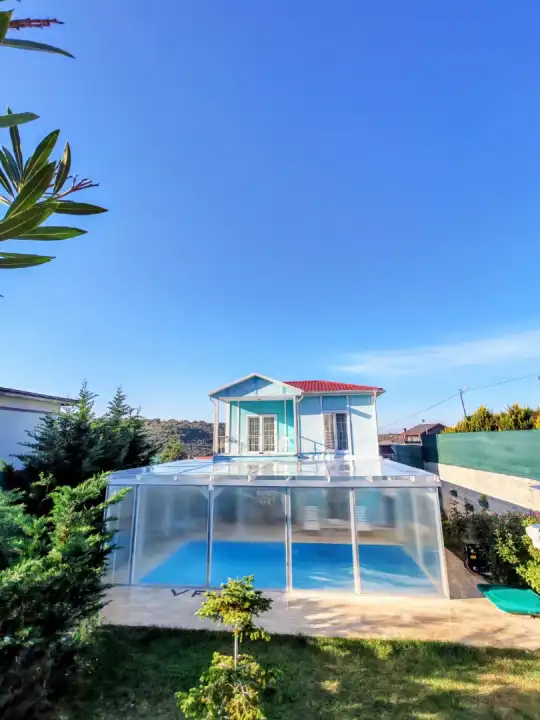Villa Ferhat, İstanbul’un doğal güzellikleriyle öne çıkan Şile mevkiinde konumlanan3+1 konseptinde, ısıtmalı havuzlu kiralık bir villadır. Doğa ile iç içe yapısı sayesinde şehir hayatının kalabalığından uzak, huzurlu ve özel bir tatil imkânı sunar. Modern ve şık dekorasyona sahip geniş odaları, misafirlerine ev konforunda konaklama sağlar.